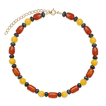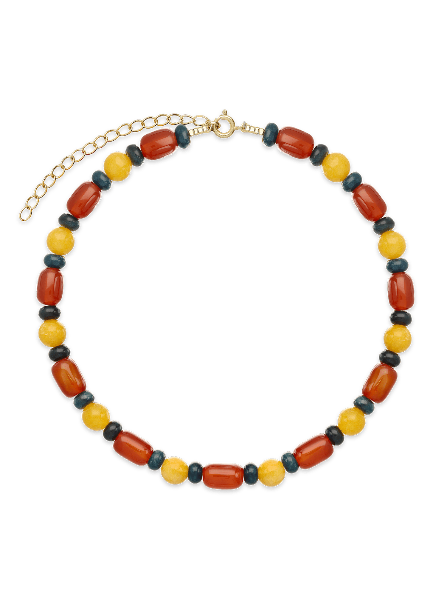 Colar de pedras banhado a Ouro com cornalina , jadeíte e quartzo