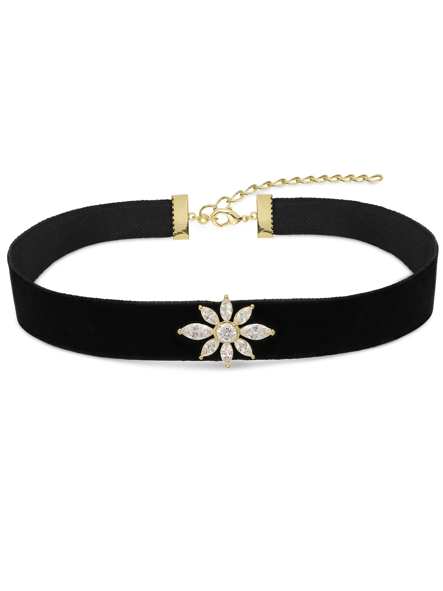 Colar choker, Banhado a Ouro, Zircónia de cultivo, Claro, Flor, Feito à mão, Dourado, 5.57 gramas.