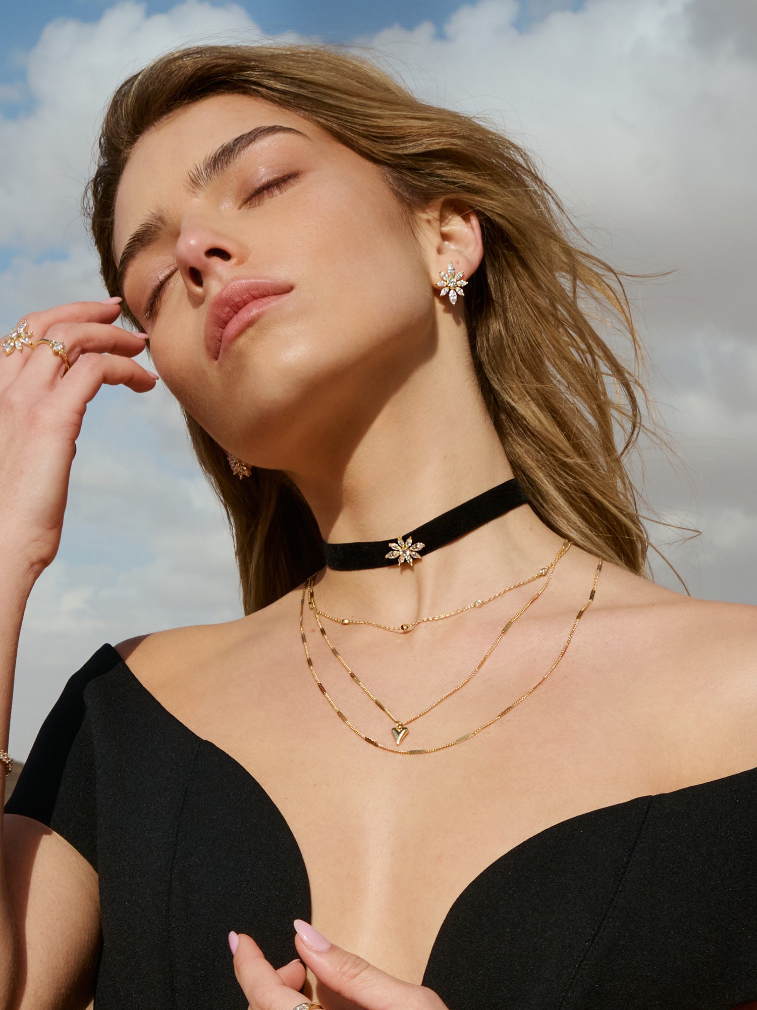 Colar choker flor banhado a Ouro com zircónias