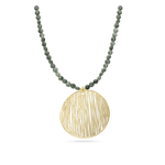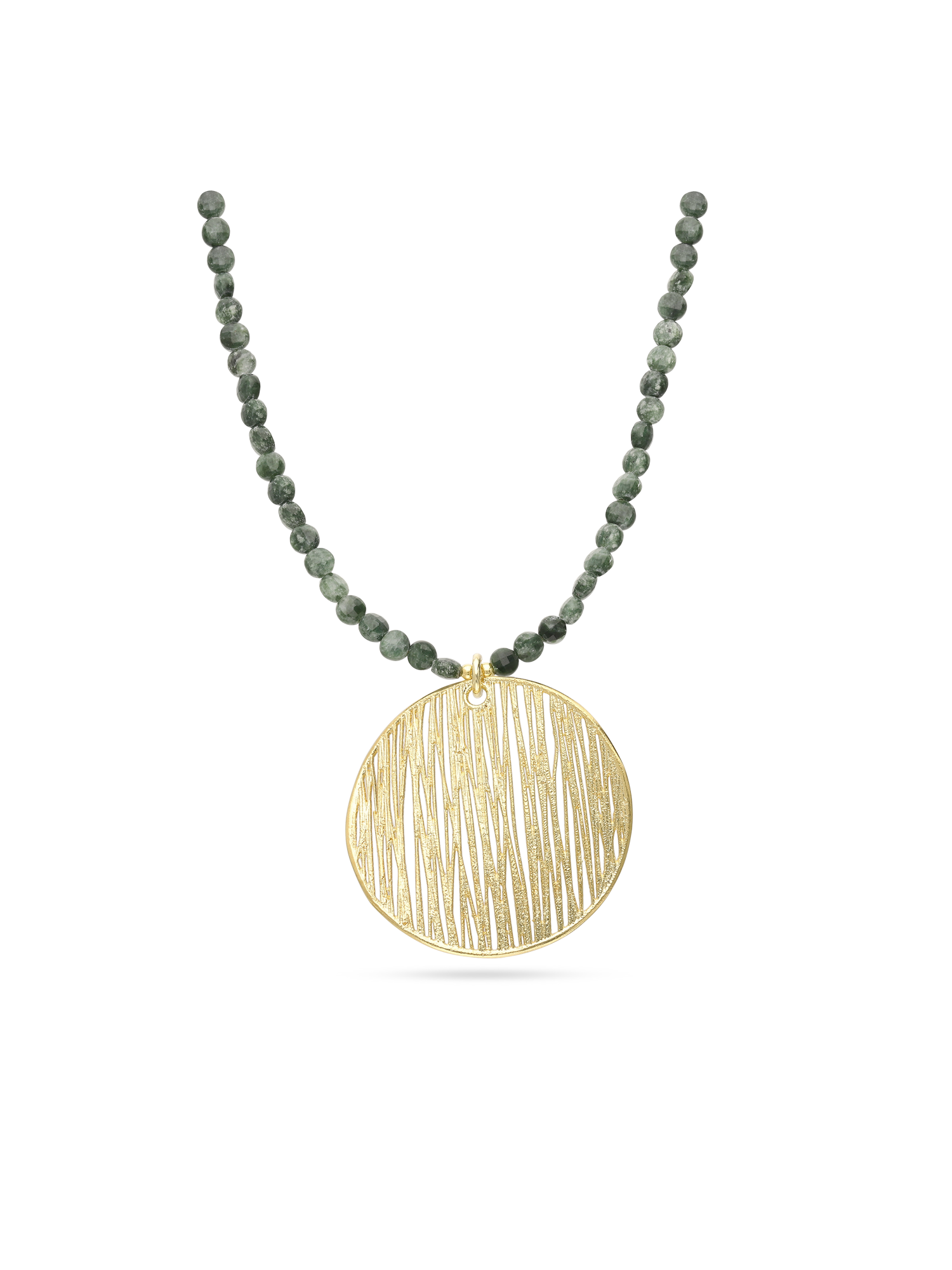Colar de pedra, Banhado a Ouro, Ágata de cultivo, Verde, Círculo, Feito à mão, Dourado, comprimento do pendente: 3.2 cm, largura do pendente: 3.2 cm, 10.30 gramas.
