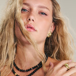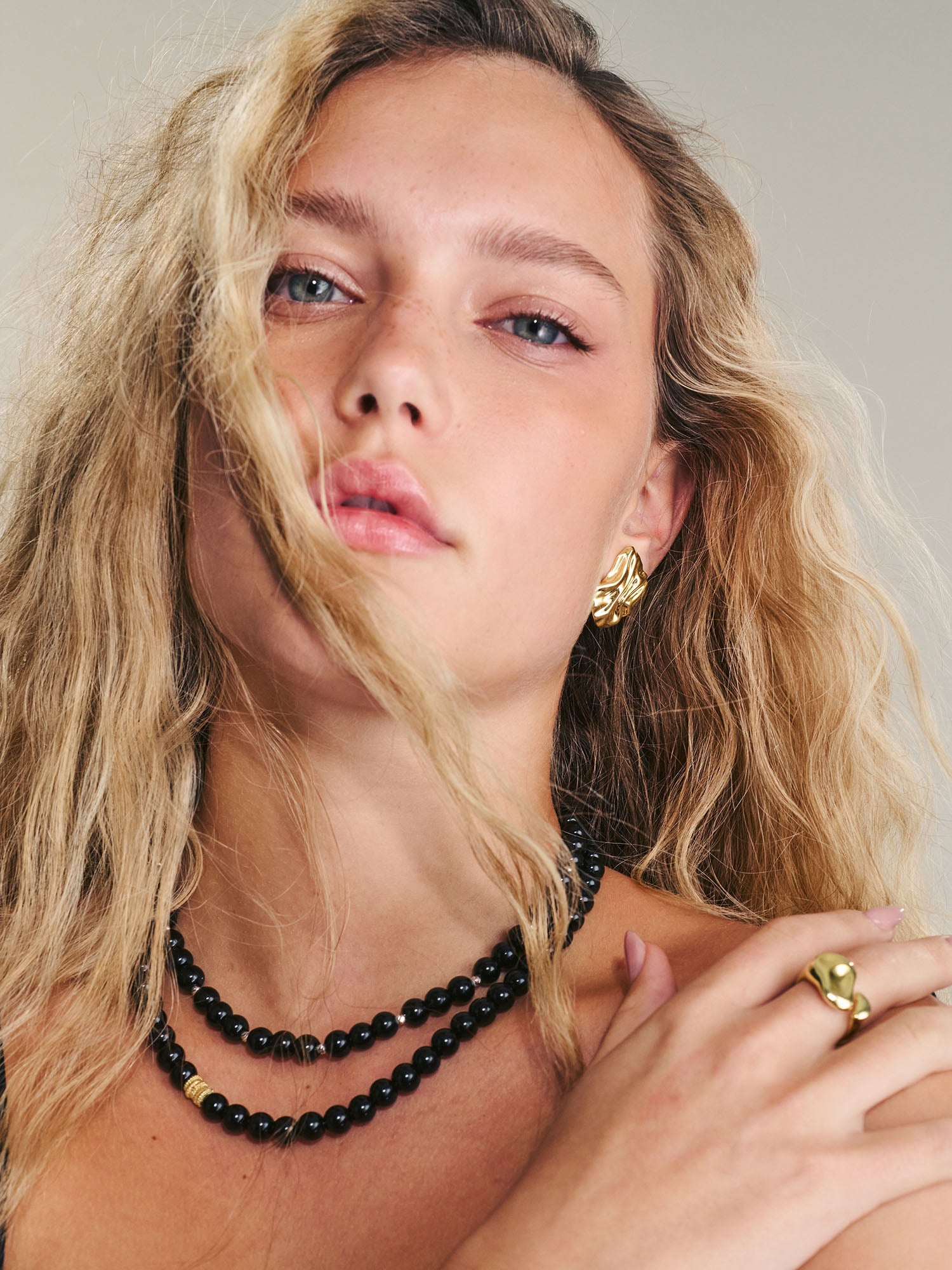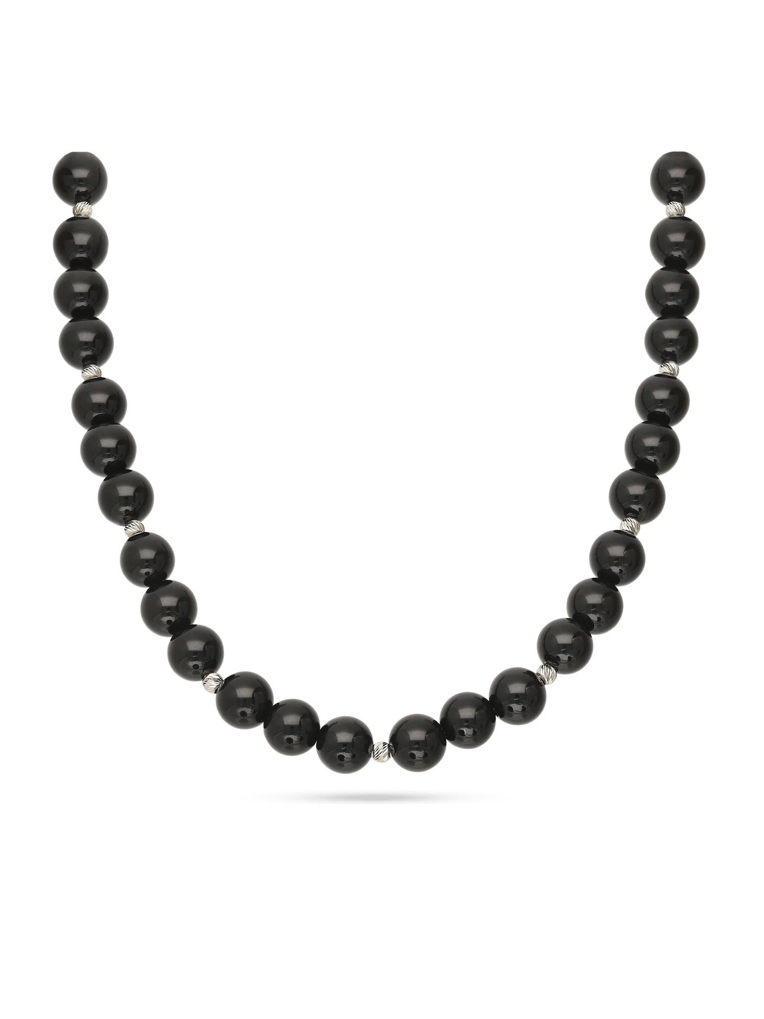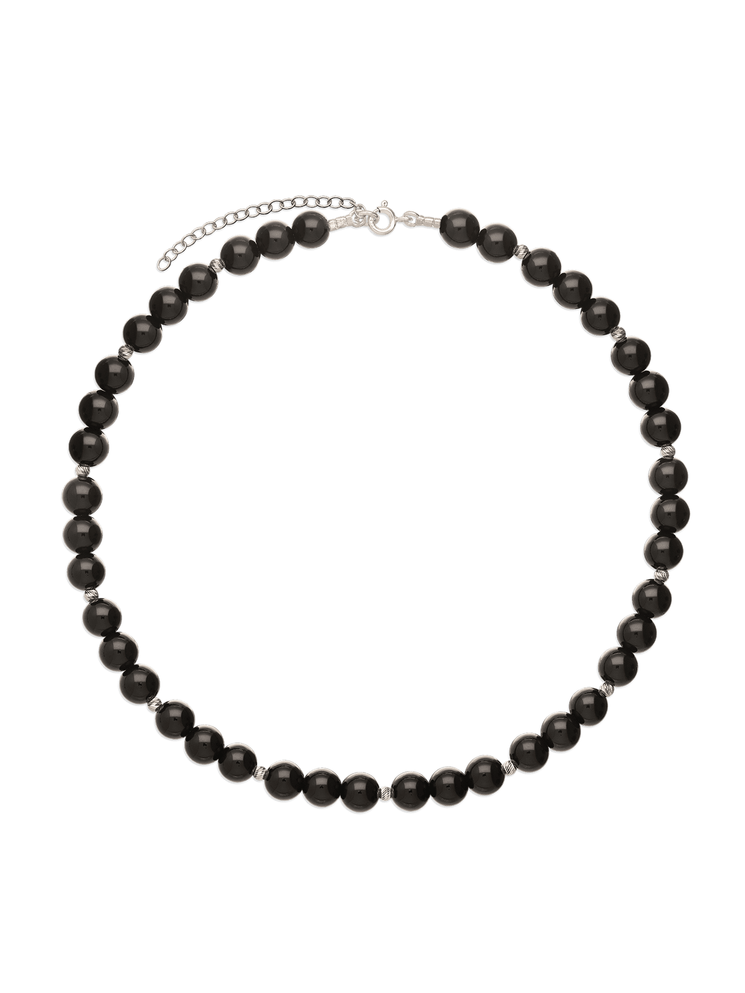 Colar choker, Prata, Ónix de cultivo, Preto, Círculo, Feito à mão, Prateado, 32.40 gramas.