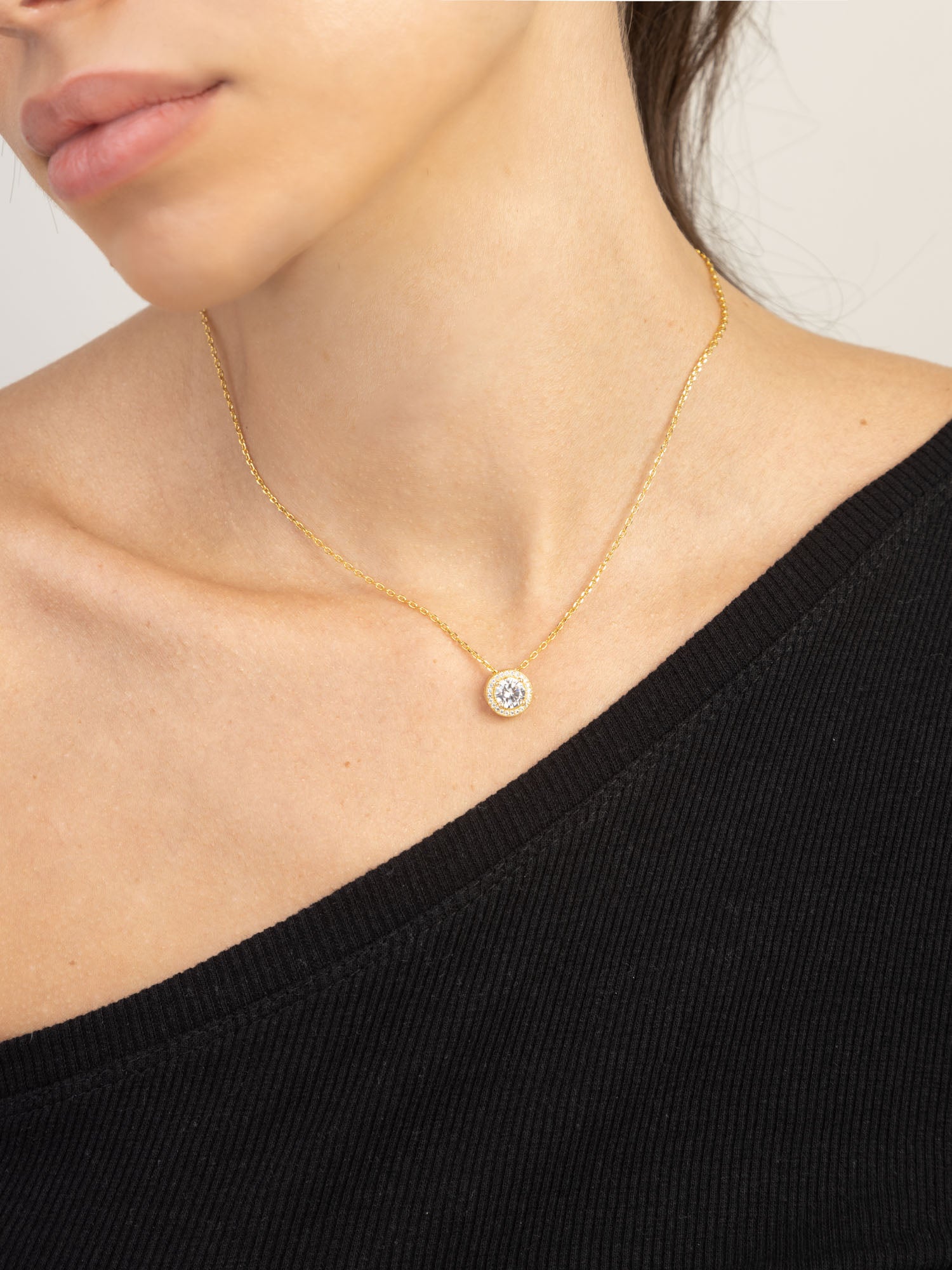 Fio com pendente, Banhado a Ouro, Zircónia de cultivo, Claro, Círculo, Feito à mão,,, Dourado, comprimento do pendente: 1.0 cm, largura do pendente: 1.0 cm, 3.37 gramas.