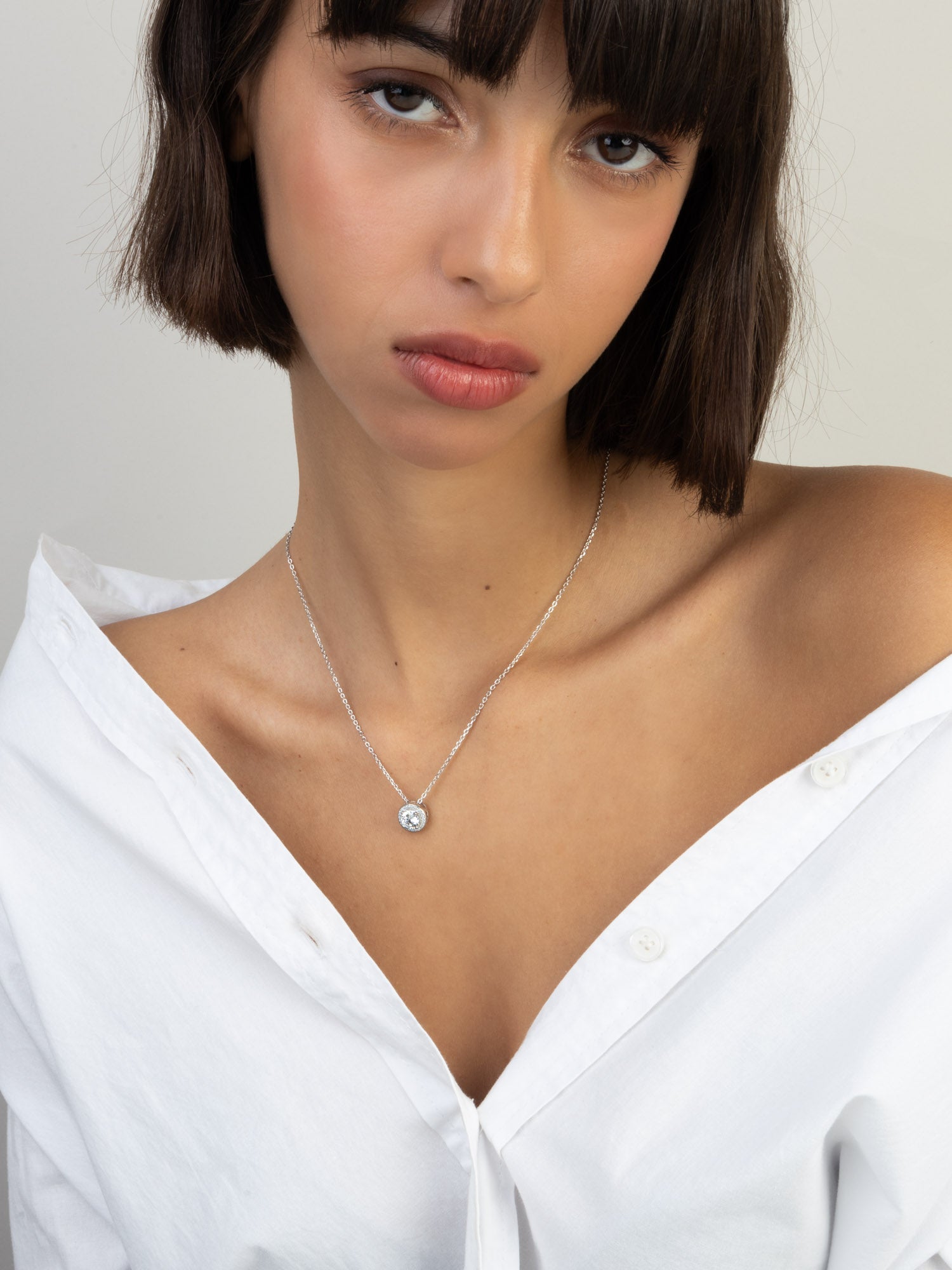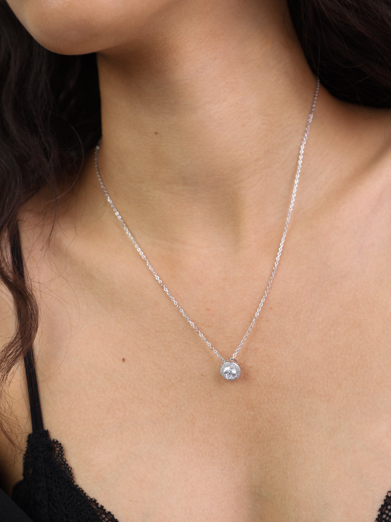 Fio com Pendente Círculo Prateado com Zircónia de Cultivo
