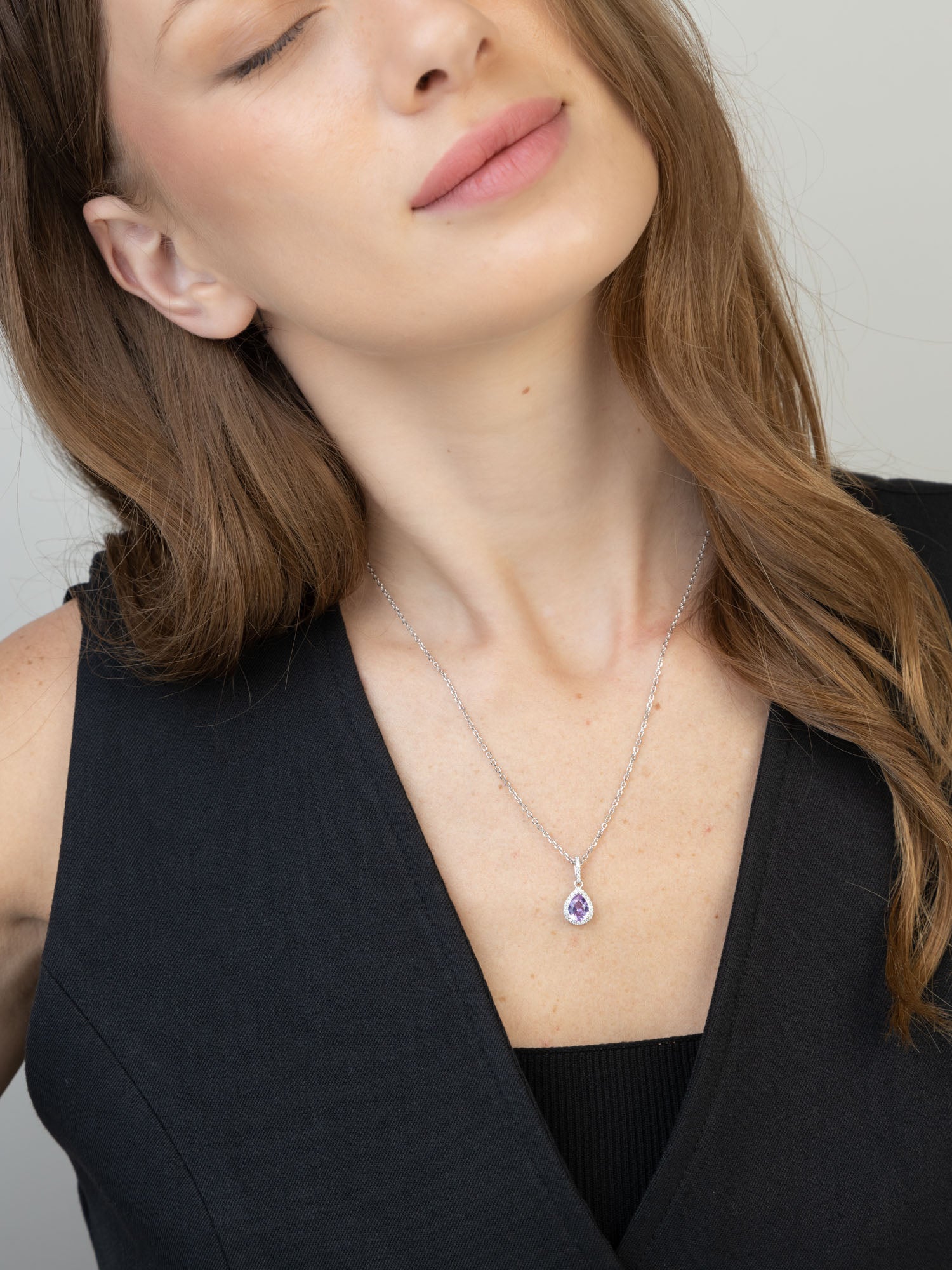 Fio com pendente violeta em prata 925 com zircónias