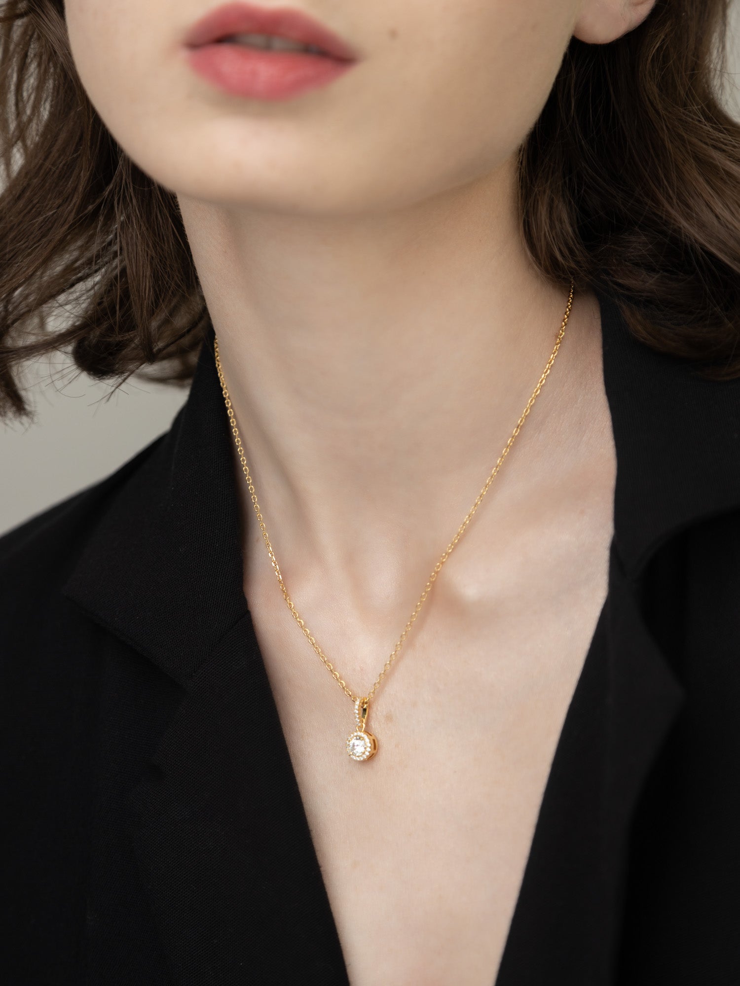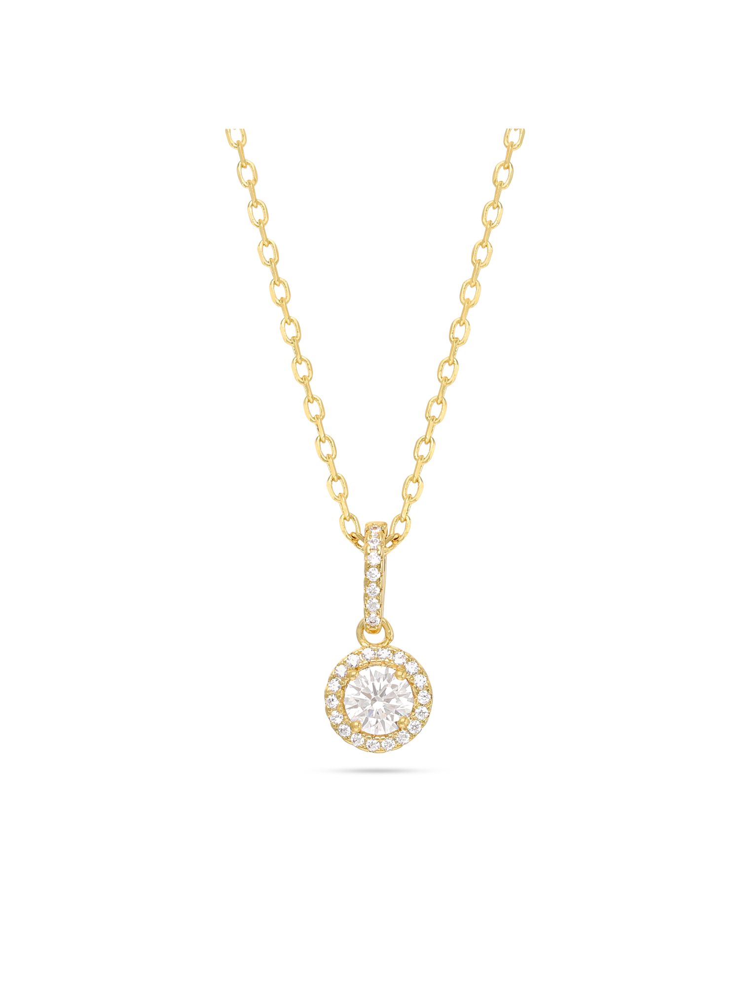 Fio com pendente, Banhado a Ouro, Zircónia de cultivo, Claro, Círculo, Feito à mão,,, Dourado, comprimento do pendente: 1.6 cm, largura do pendente: 0.8 cm, 3.25 gramas.