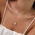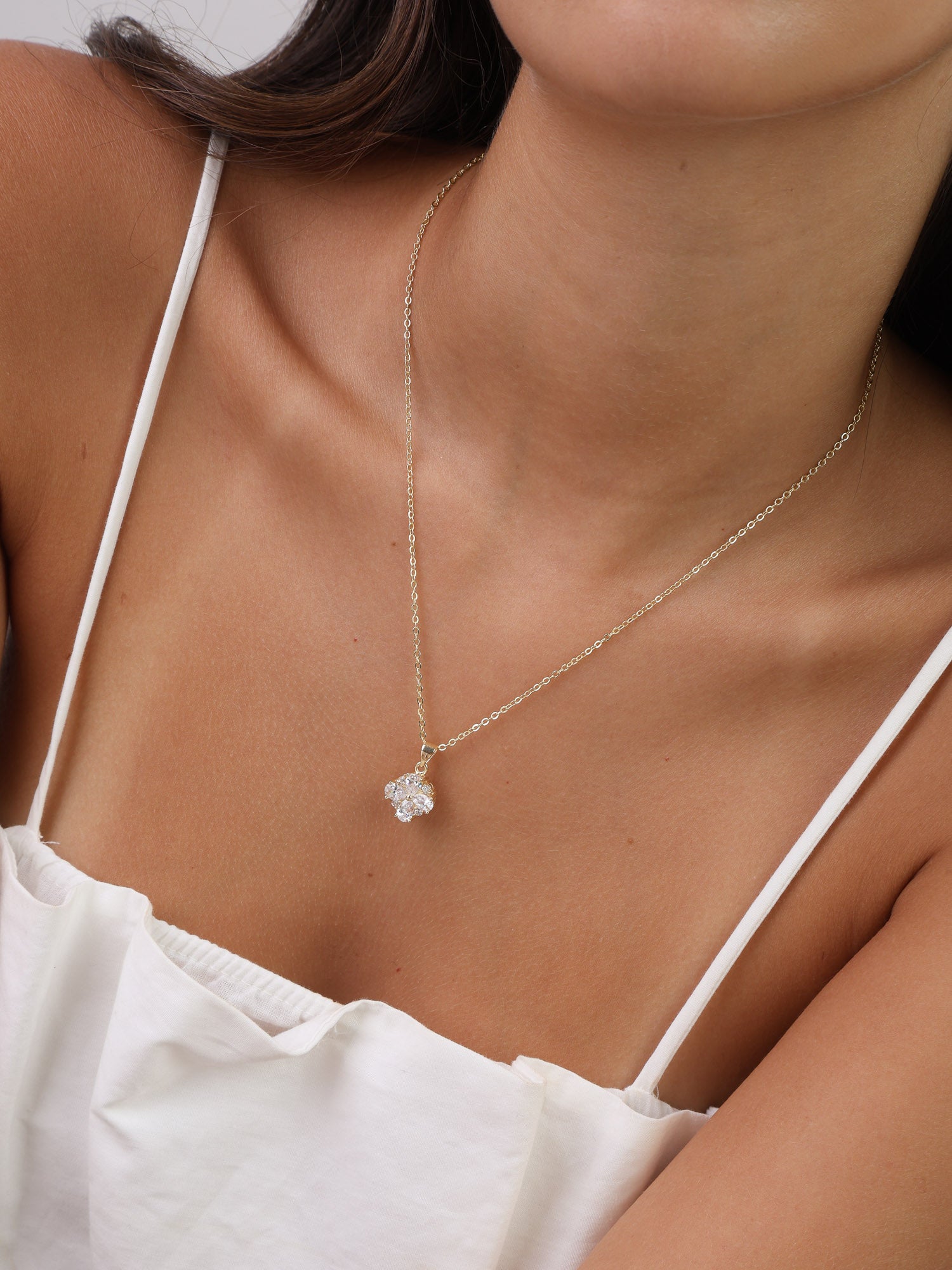 Fio com pendente flor banhado a ouro com zircónias
