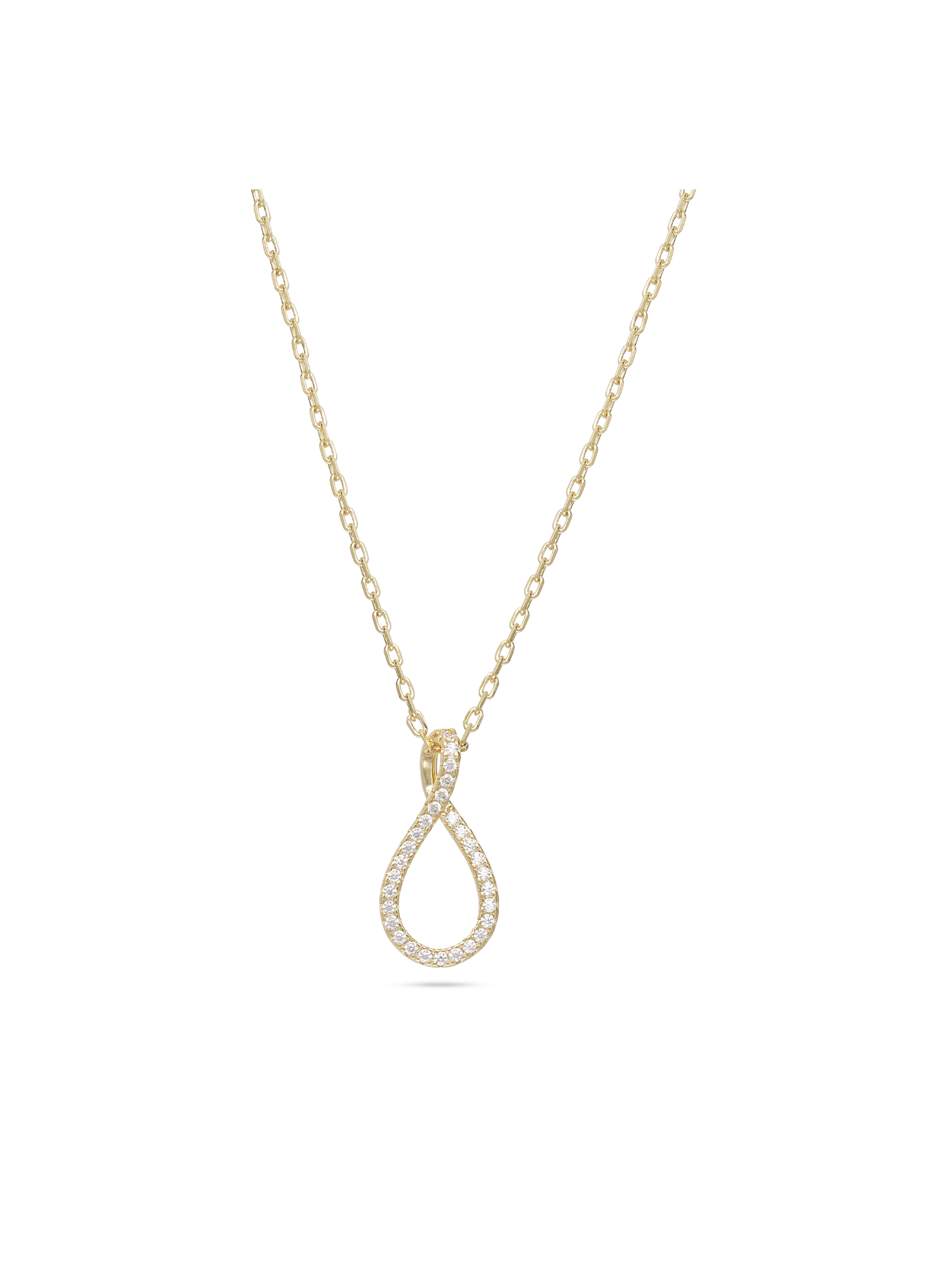 Fio com pendente, Banhado a Ouro, Zircónia de cultivo, Claro, Lágrima, Feito à mão,, Dourado, comprimento do pendente: 2.0 cm, largura do pendente: 1.0 cm, 1.62 gramas.
