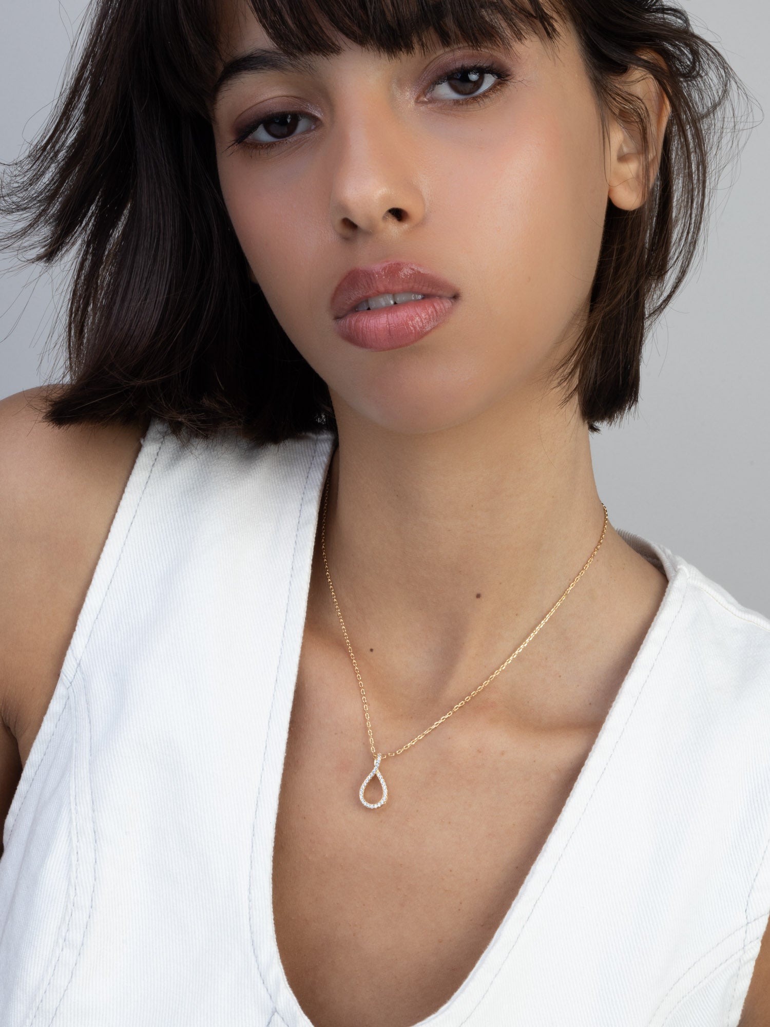 Fio com pendente banhado a ouro com zircónia