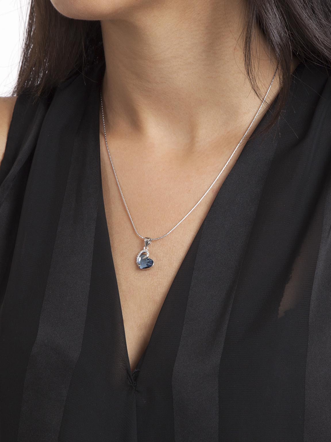 Fio com pendente em prata 925 com zircónia e cristal swarovski azul