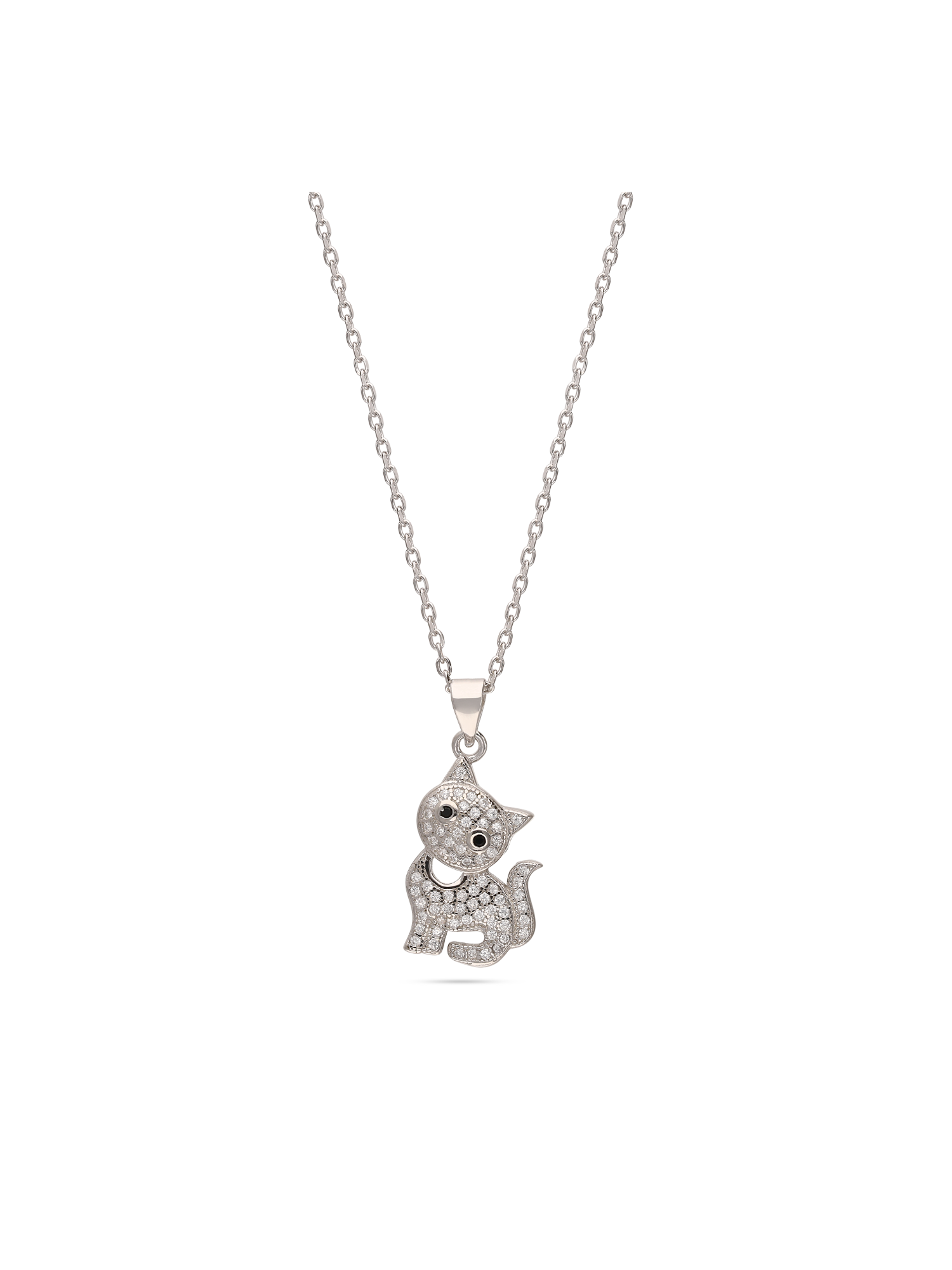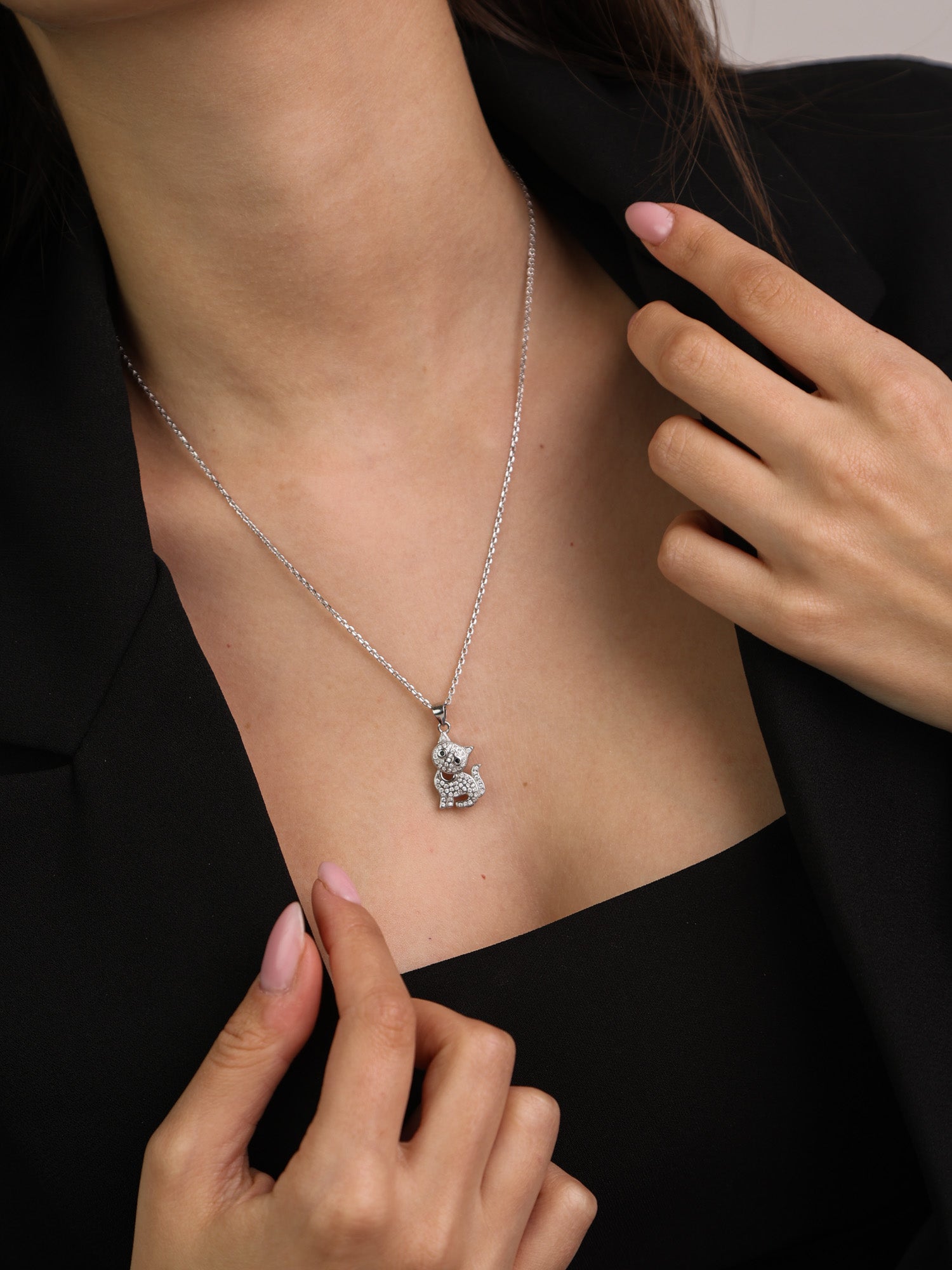 Fio com pendente, Prata, Prata de lei 925, Zircónia de cultivo, Preto, Claro, Animal, Feito à mão,,, Prateado, comprimento do pendente: 2.5 cm, largura do pendente: 1.2 cm, 4.65 gramas.