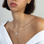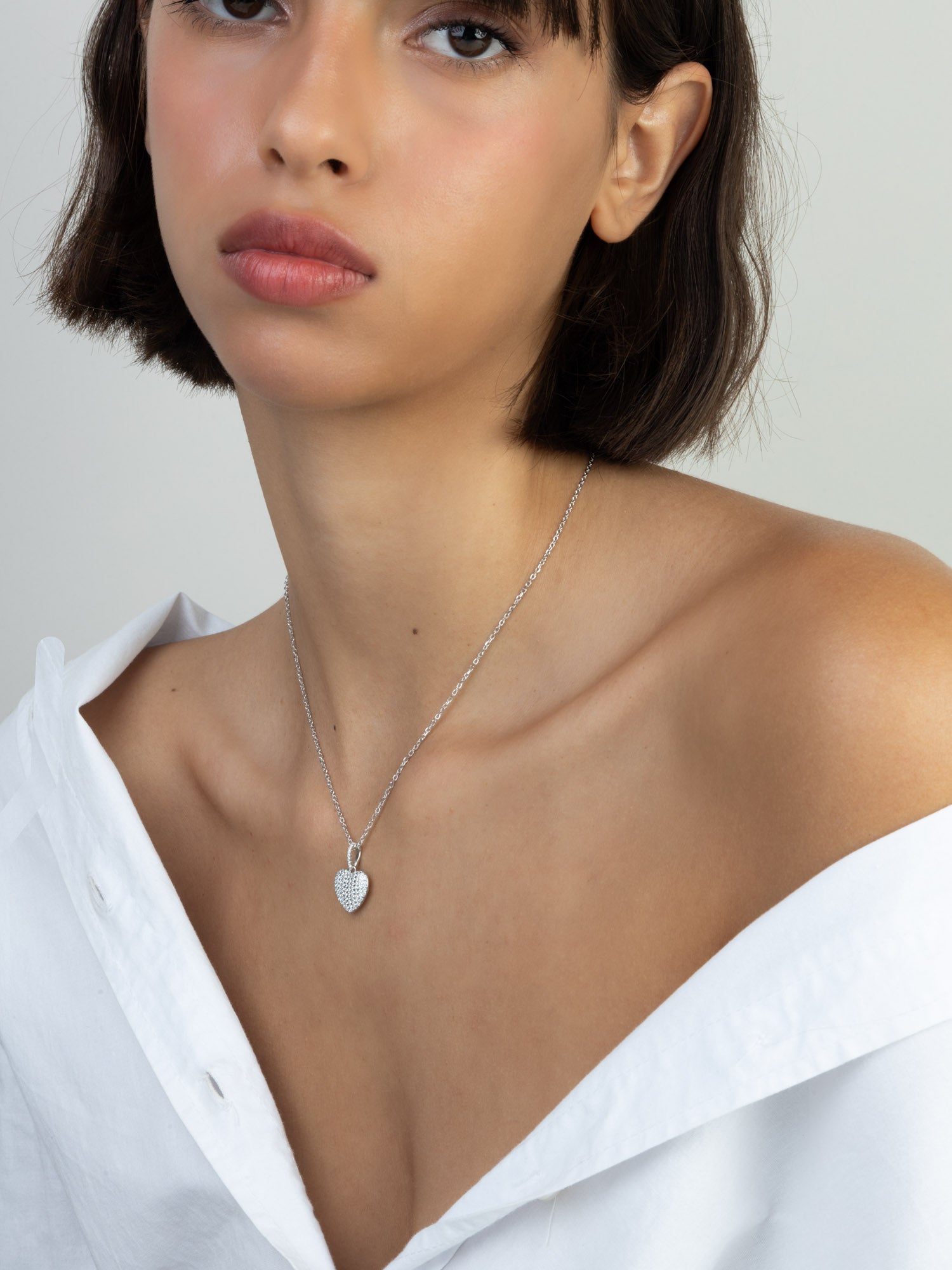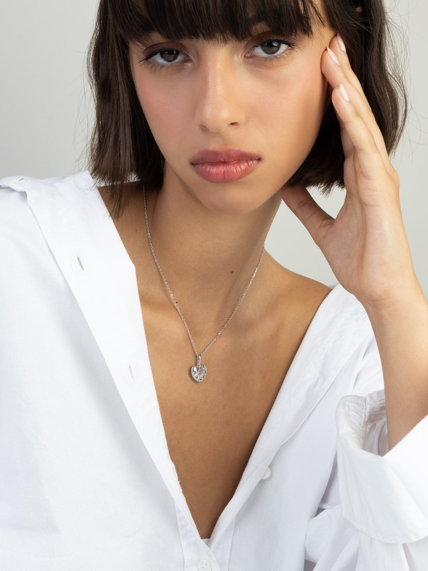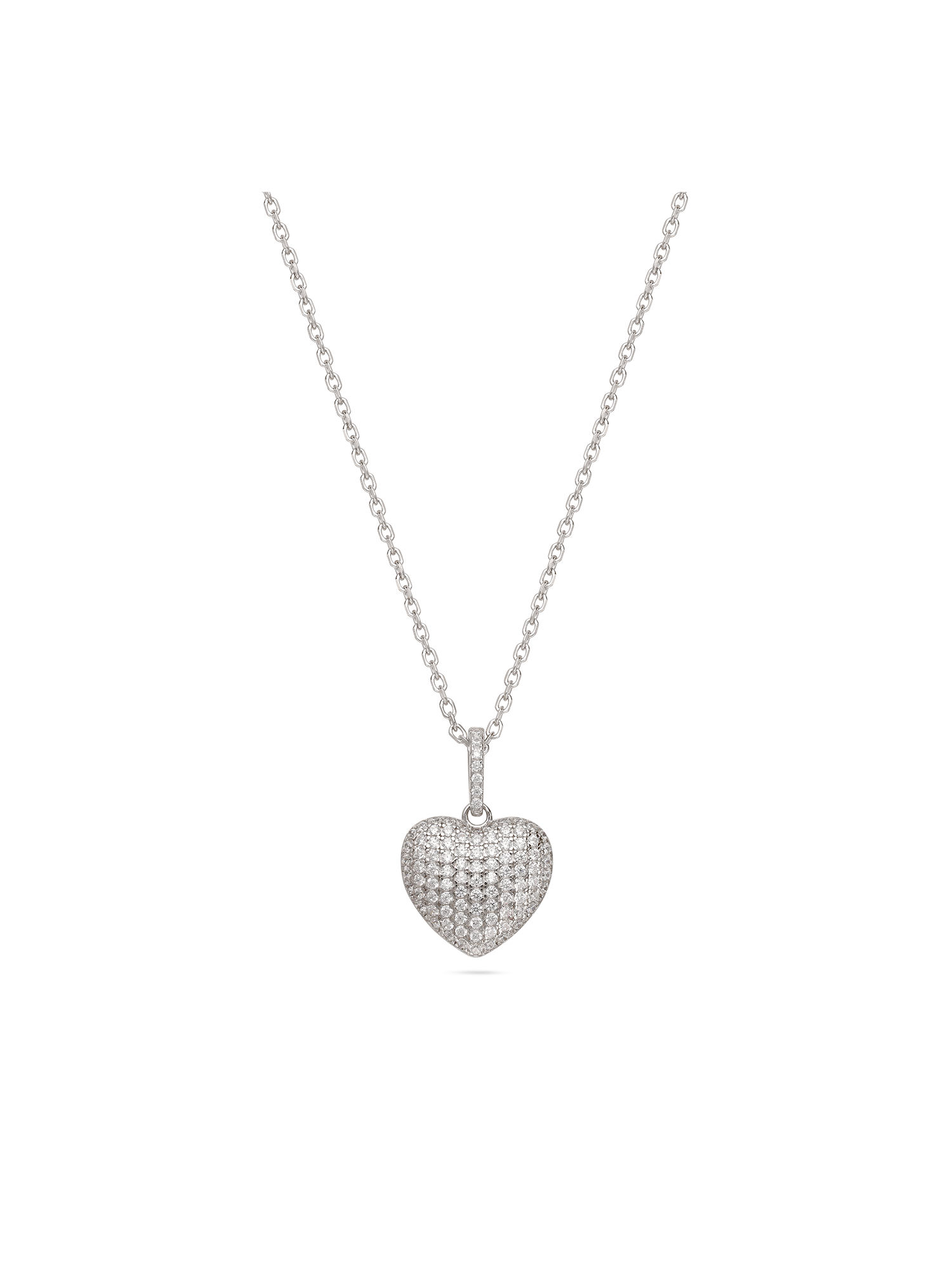 Fio com pendente, Prata de lei 925, Zircónia de cultivo, Claro, Coração, Feito à mão,,, Prateado, comprimento do pendente: 2.2 cm, largura do pendente: 1.5 cm, 2.10 gramas.