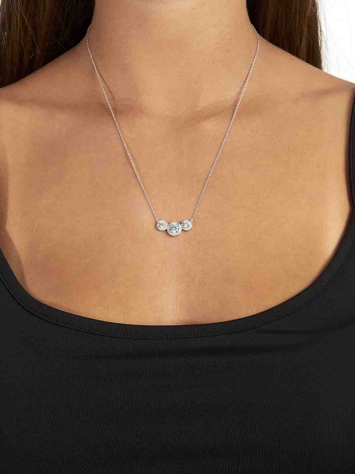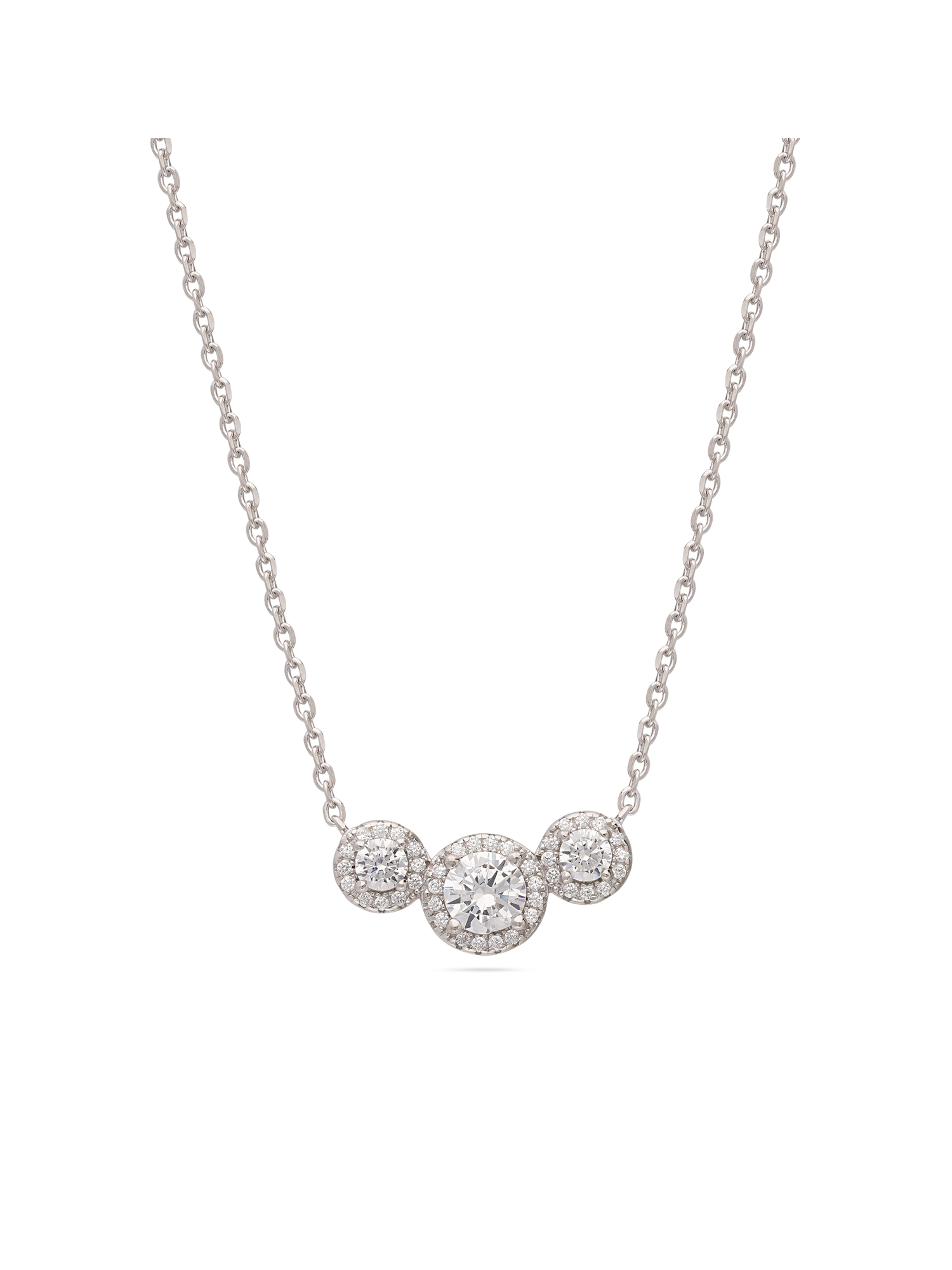 Fio com pendente, Prata, Prata de lei 925, Zircónia de cultivo, Claro, Círculo, Feito à mão,,, Prateado, 4.20 gramas.