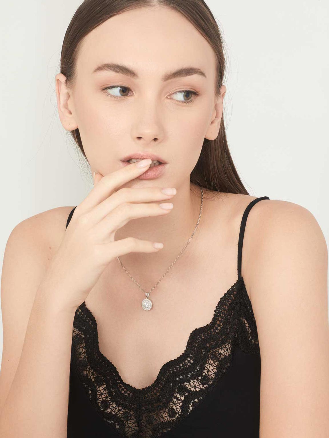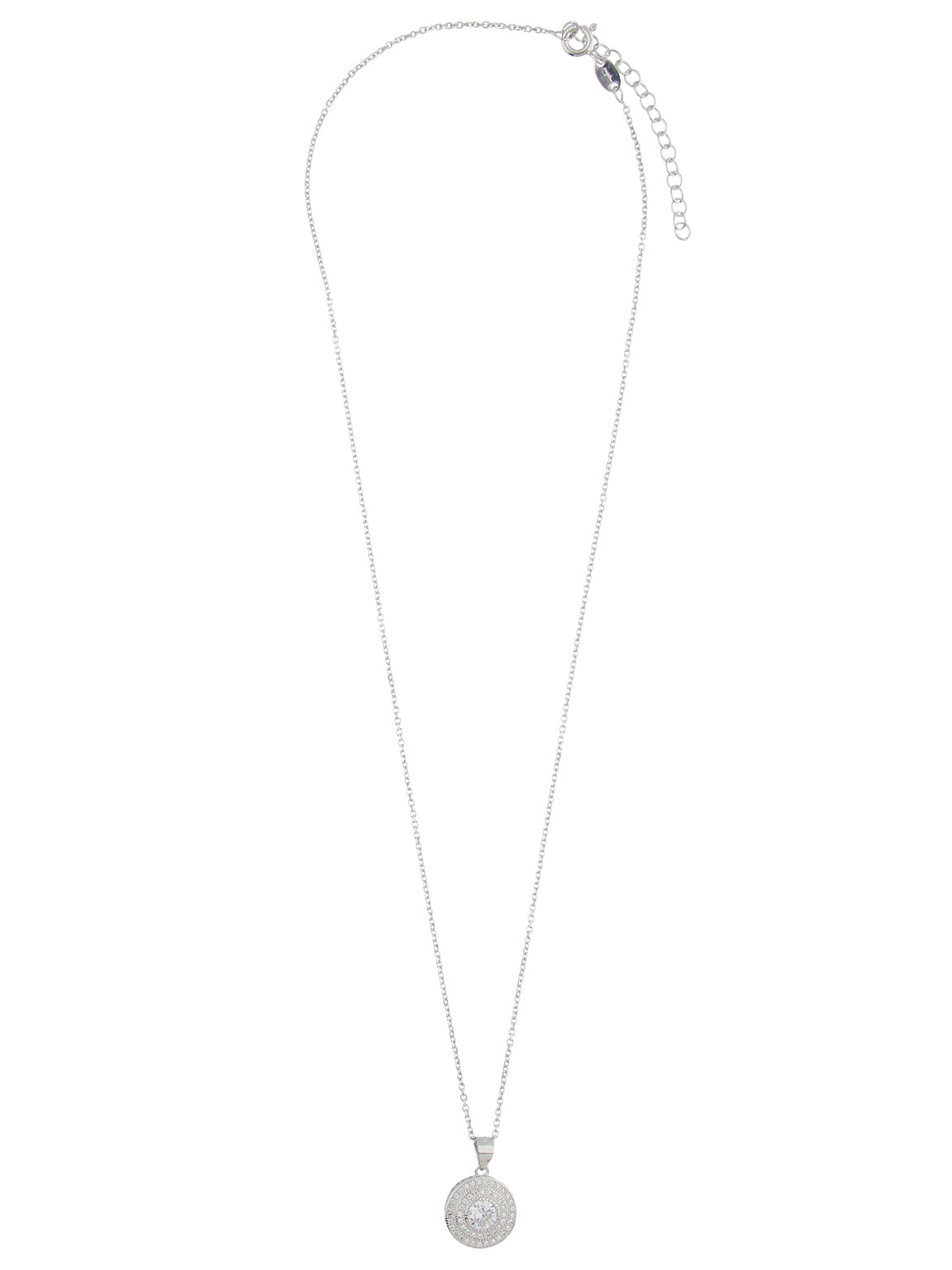 Fio com pendente, Prata de lei 925, Zircónia de cultivo, Claro, Círculo, Feito à mão,,, Prateado, largura do pendente: 1.4 cm, 3.50 gramas.
