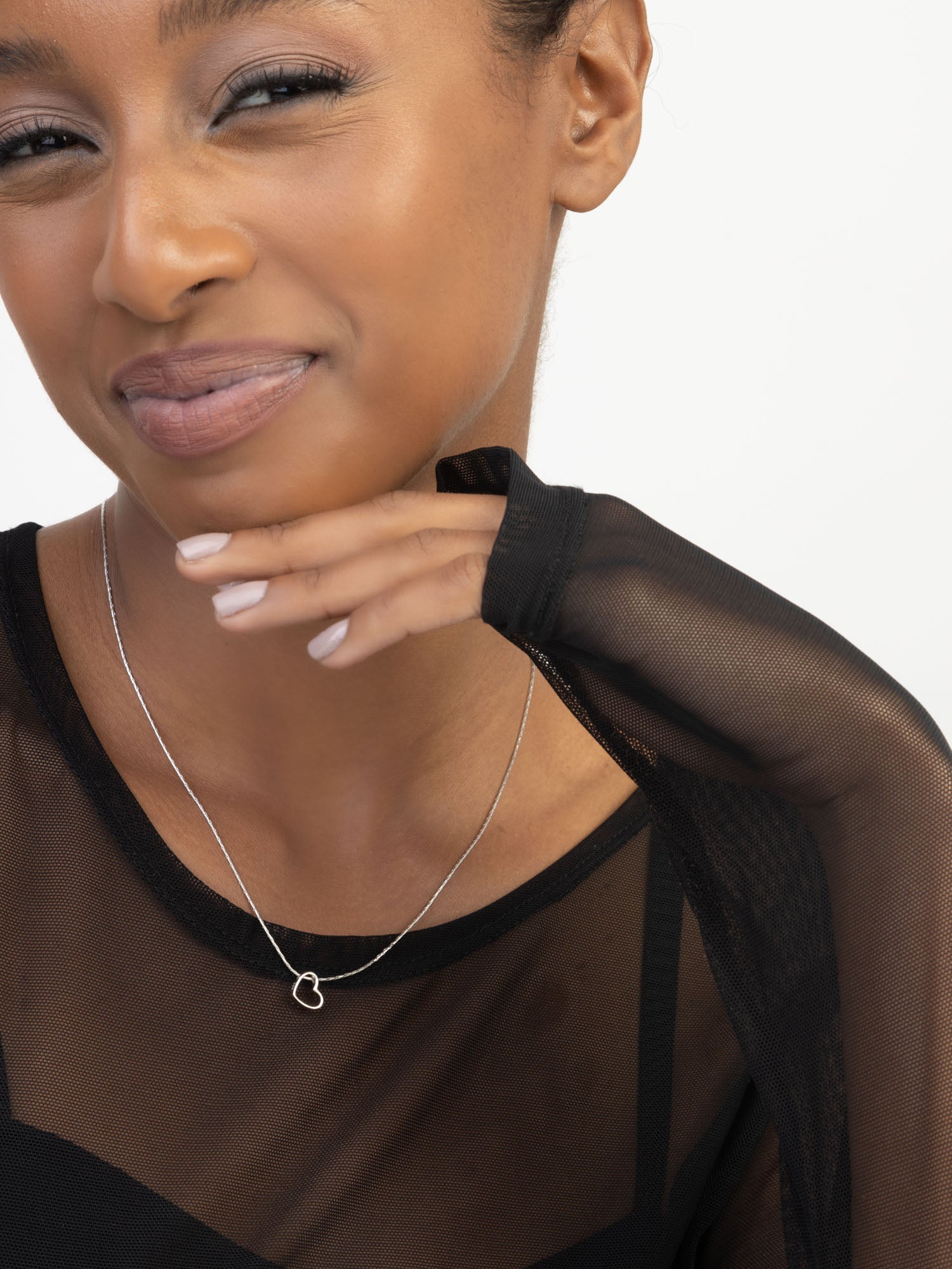 Fio com pendente, Prata de lei 925, Nenhuma pedra, Sem cor, Coração,, Prateado, largura do pendente: 0.9 cm, comprimento do pendente: 0.9 cm, 2.93 gramas.