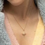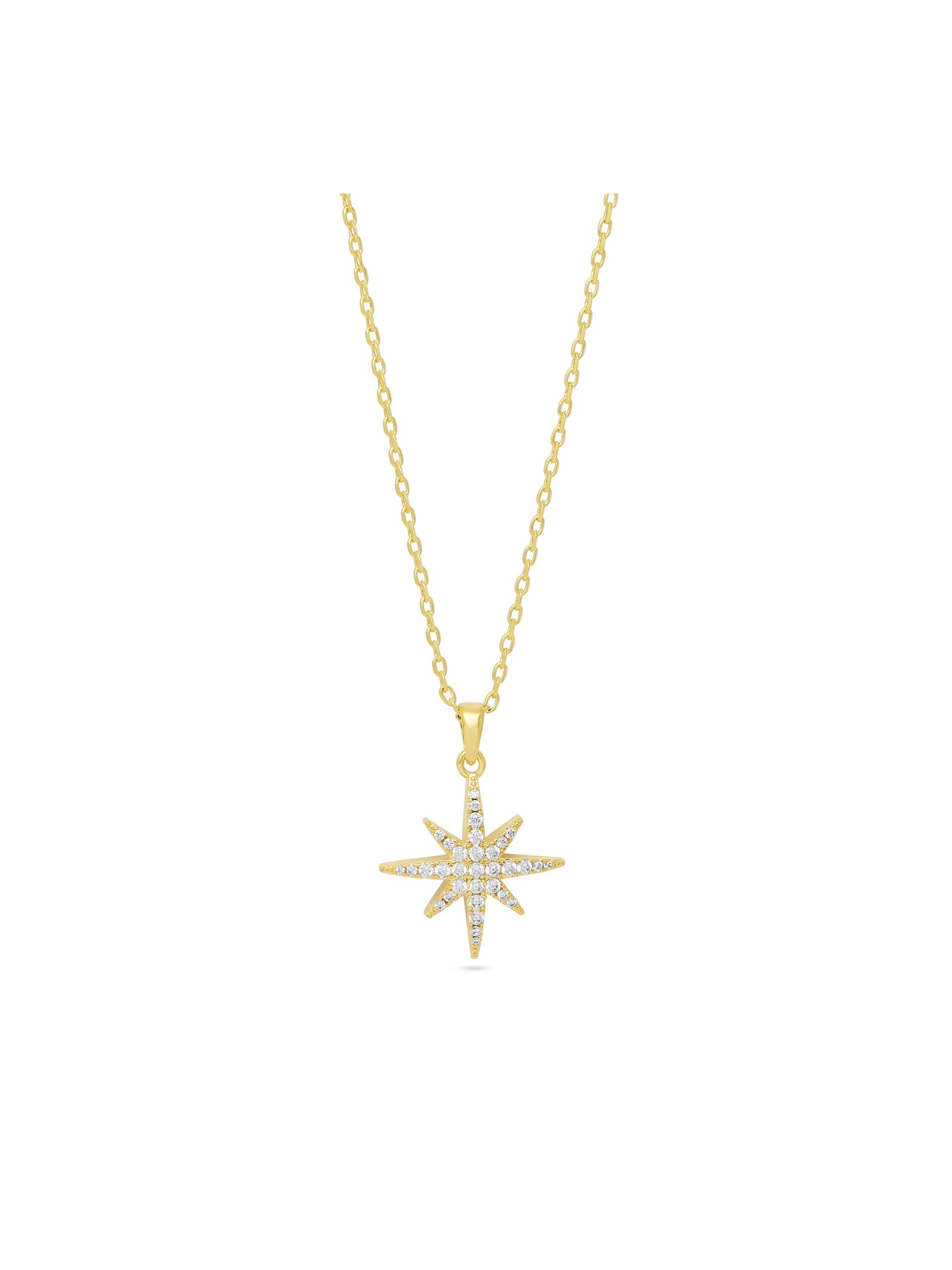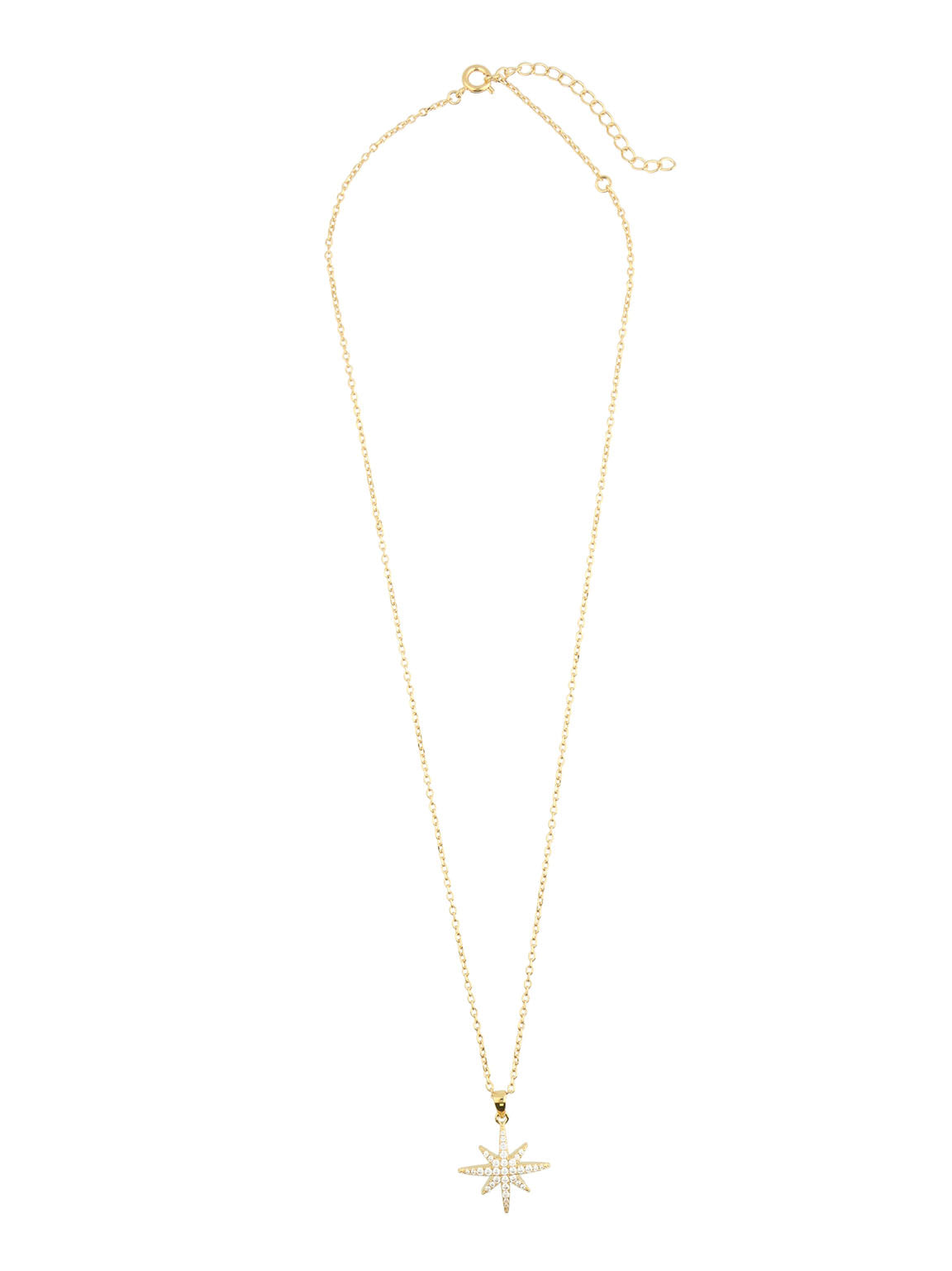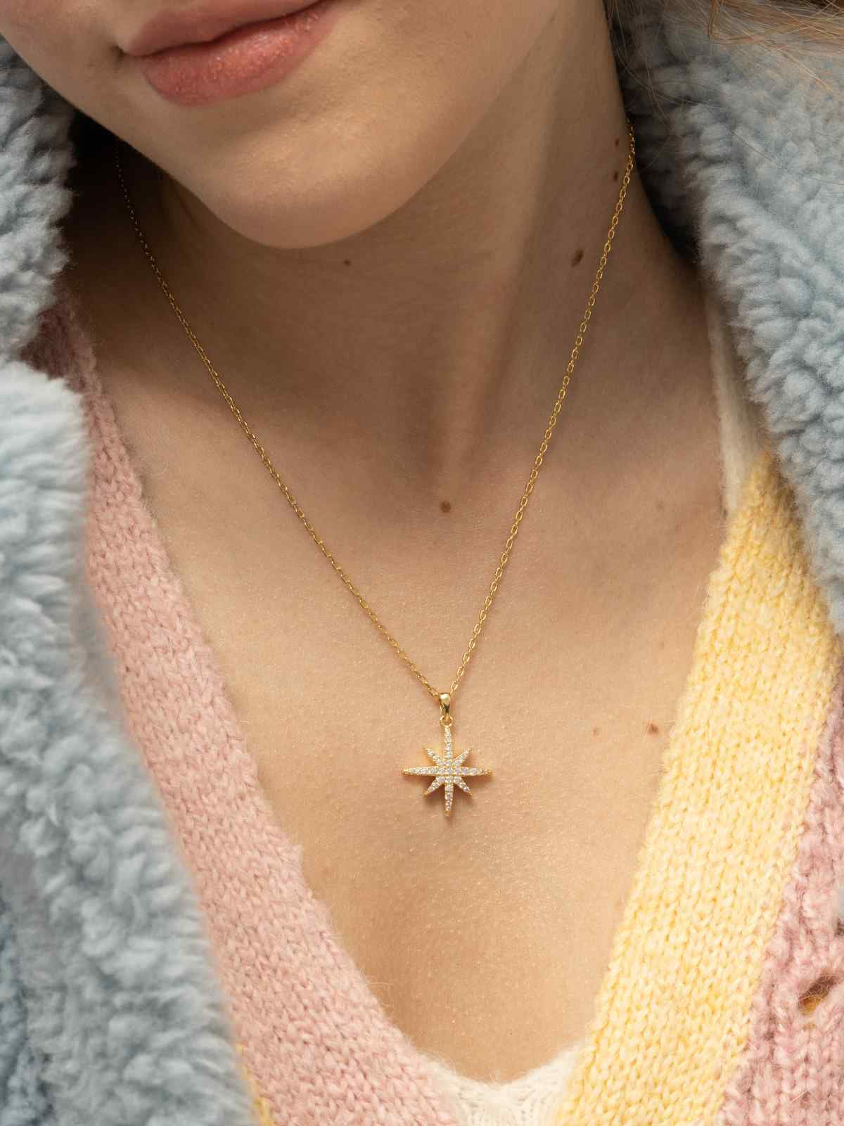 Fio com pendente, Banhado a Ouro, Zircónia de cultivo, Claro, Estrela, Feito à mão, Dourado, comprimento do pendente: 2.5 cm, largura do pendente: 1.9 cm, 3.77 gramas.