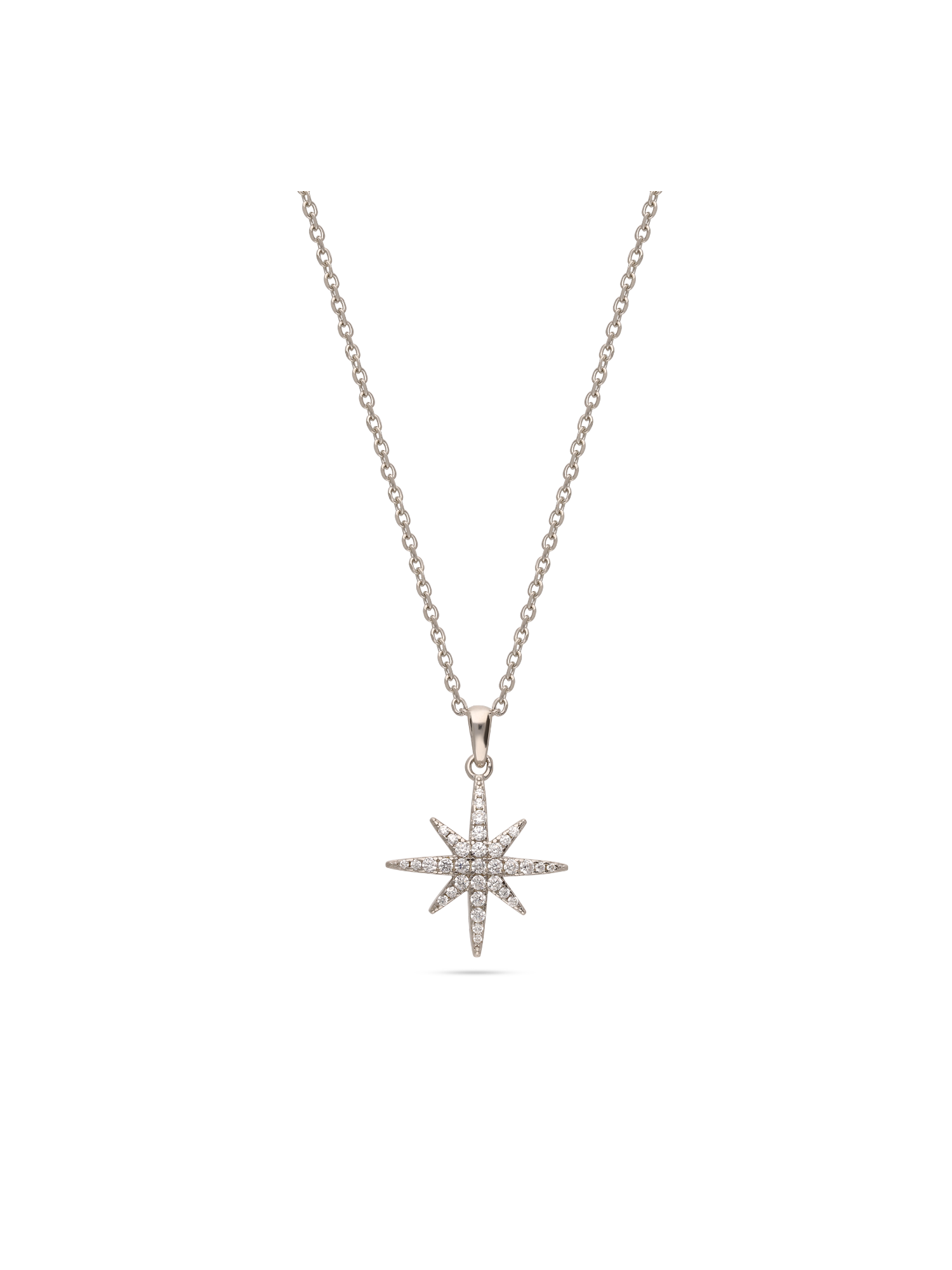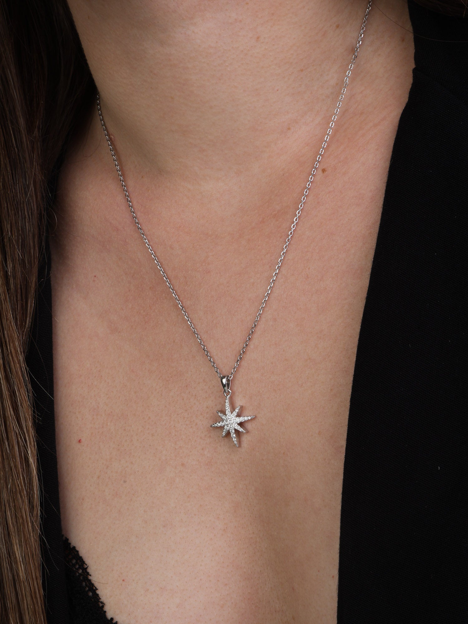 Zircónias Transparentes: O pendente em forma de estrela é decorado com zircónias transparentes, acrescentando um brilho subtil e sofisticado