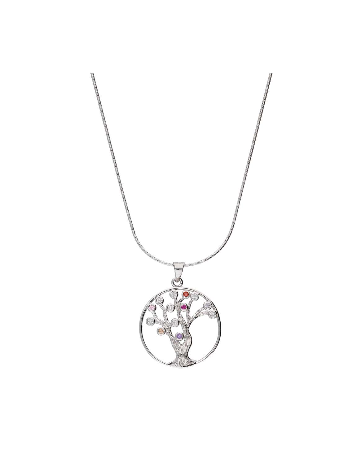 Fio com pendente árvore da vida em prata 925 com zircónia colorida