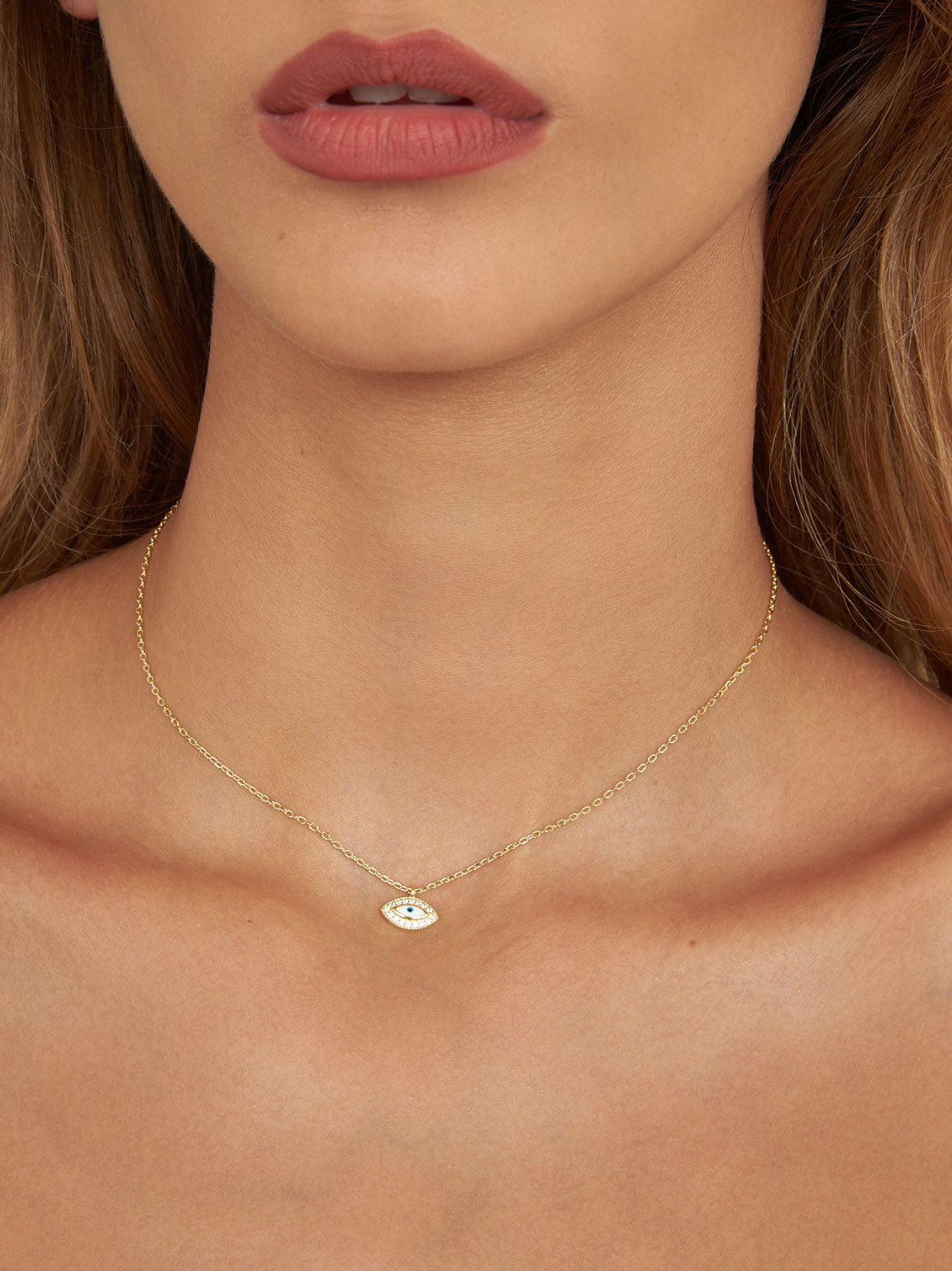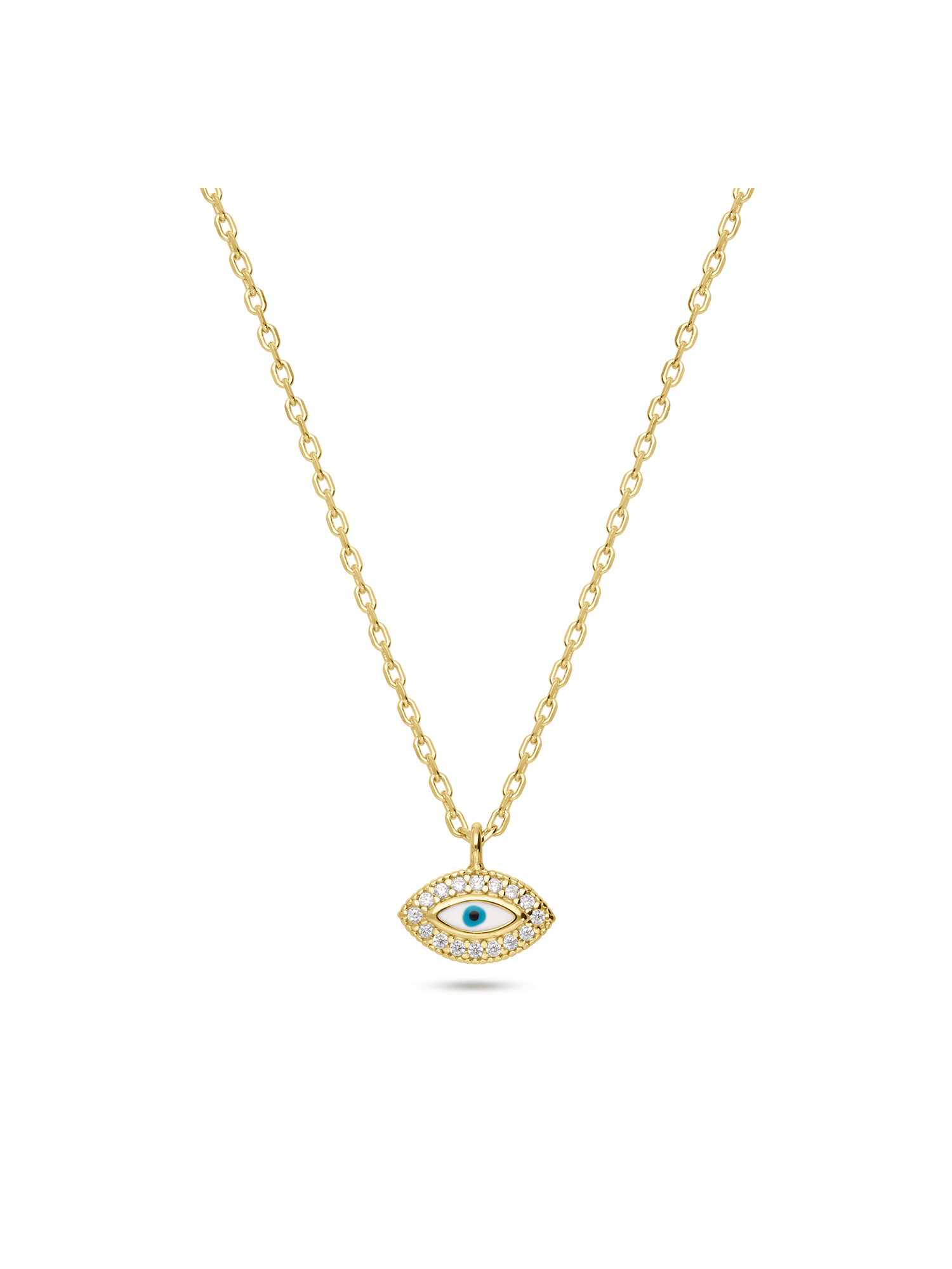 Fio com pendente, Banhado a Ouro, Zircónia de cultivo, Esmalte, Colorido, Olho, Feito à mão,, Dourado, comprimento do pendente: 0.5 cm, largura do pendente: 1.0 cm, 2.02 gramas.