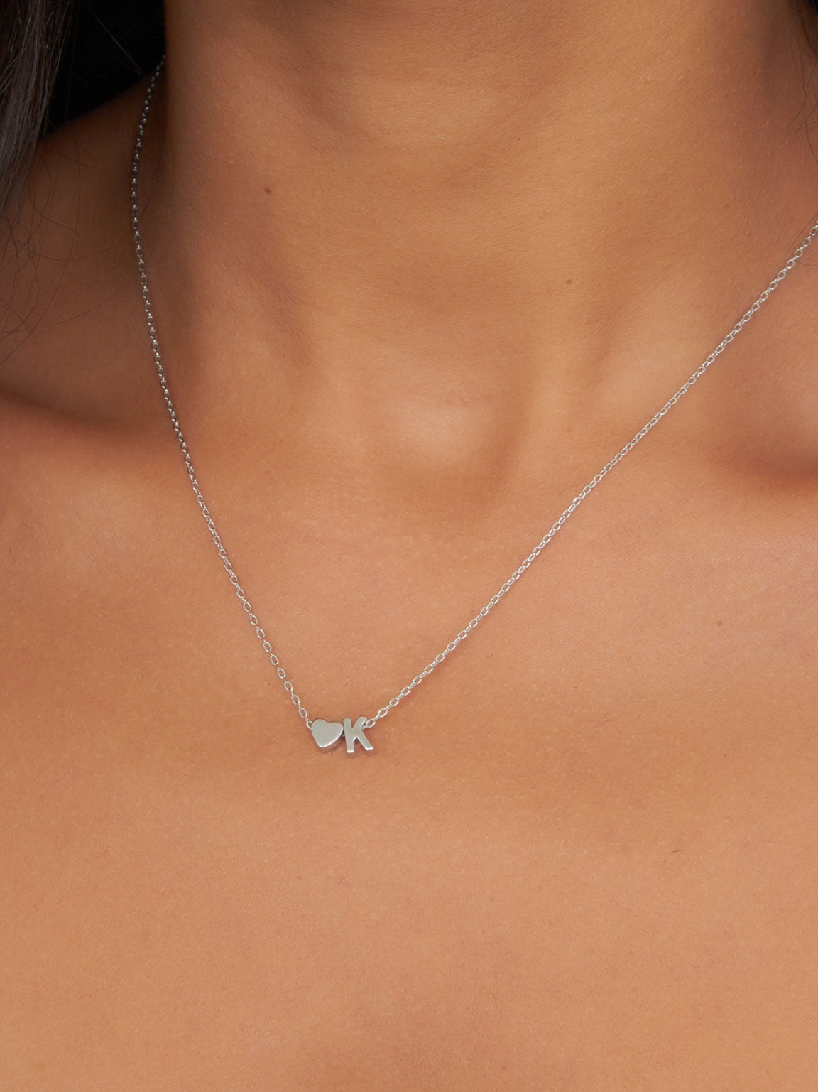 Fio com pendente, Prata de lei 925, Nenhuma pedra, Sem cor, Coração, Letra,, Prateado, comprimento do pendente: 0.7 cm, largura do pendente: 0.5 cm, 2.81 gramas.