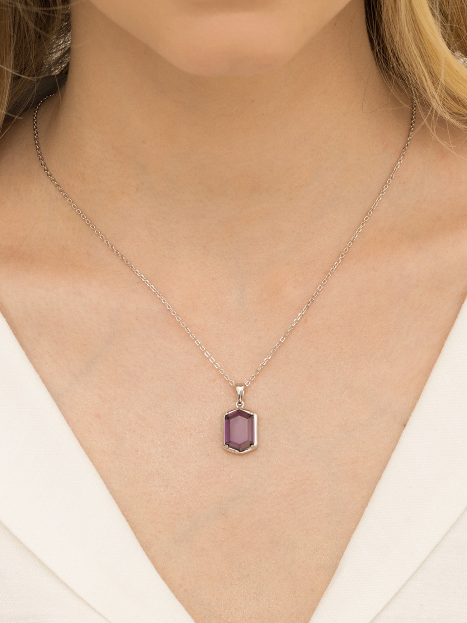 Fio com pendente, Prata de lei 925, Zircónia de cultivo, Roxo escuro, Signo do zodíaco, Feito à mão,, Prateado, largura do pendente: 1.2 cm, comprimento do pendente: 2.5 cm, 6.28 gramas.