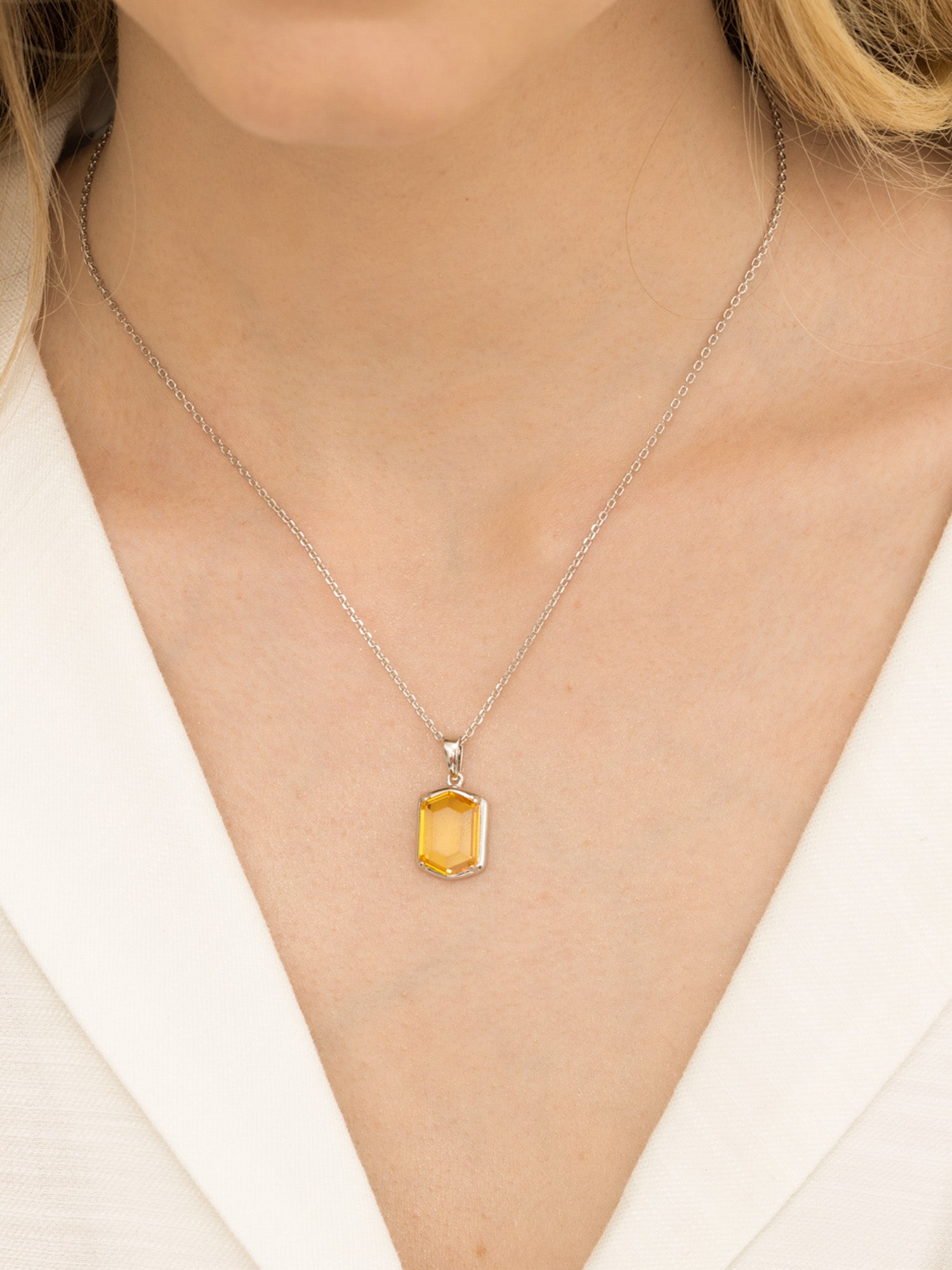 Fio com pendente, Prata de lei 925, Zircónia de cultivo, Amarelo, Signo do zodíaco, Feito à mão,, Prateado, comprimento do pendente: 2.5 cm, largura do pendente: 1.2 cm, 6.28 gramas.