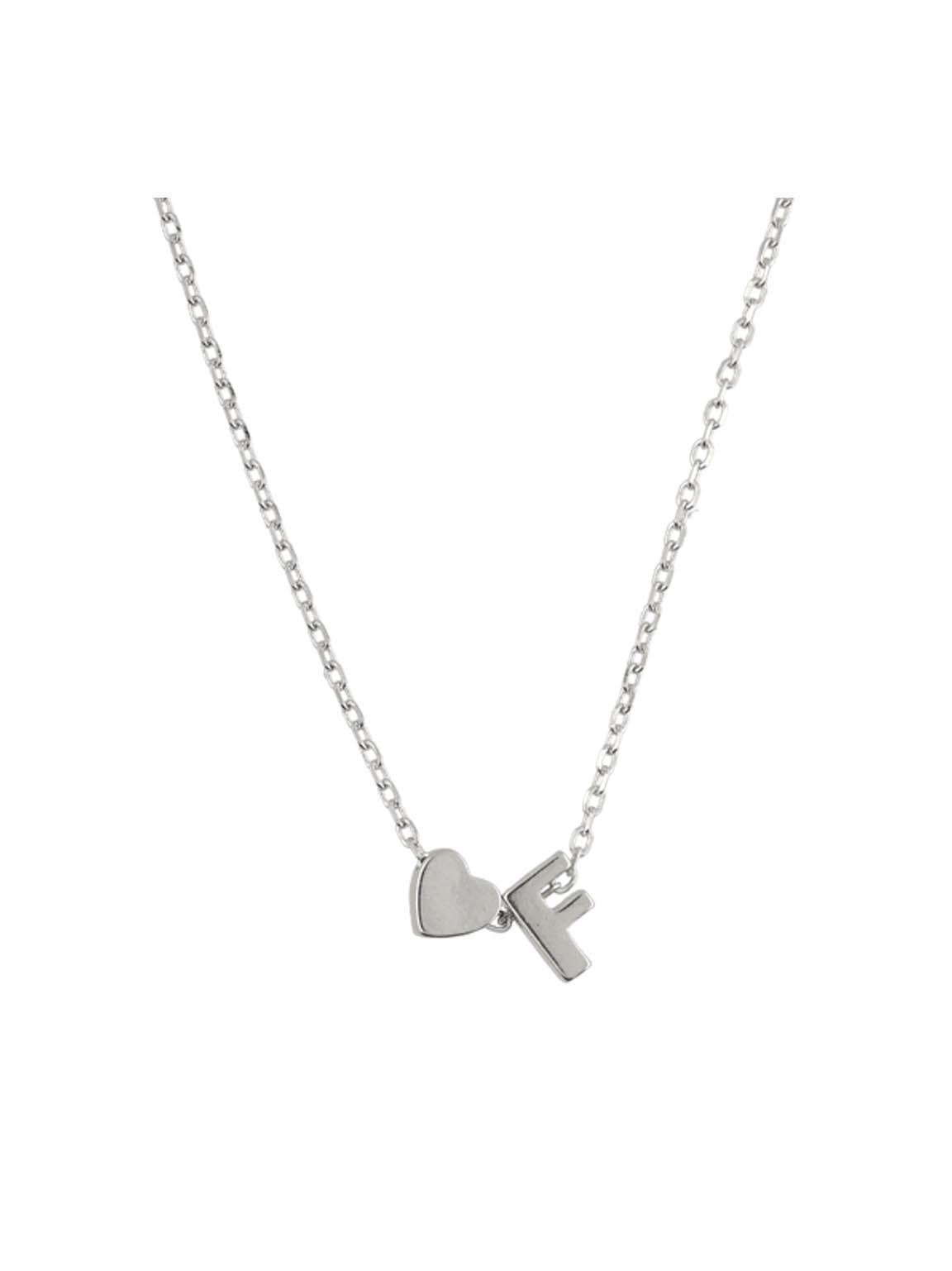 Fio com pendente, Prata de lei 925, Nenhuma pedra, Sem cor, Coração, Letra,, Prateado, largura do pendente: 0.5 cm, comprimento do pendente: 0.7 cm, 2.91 gramas.