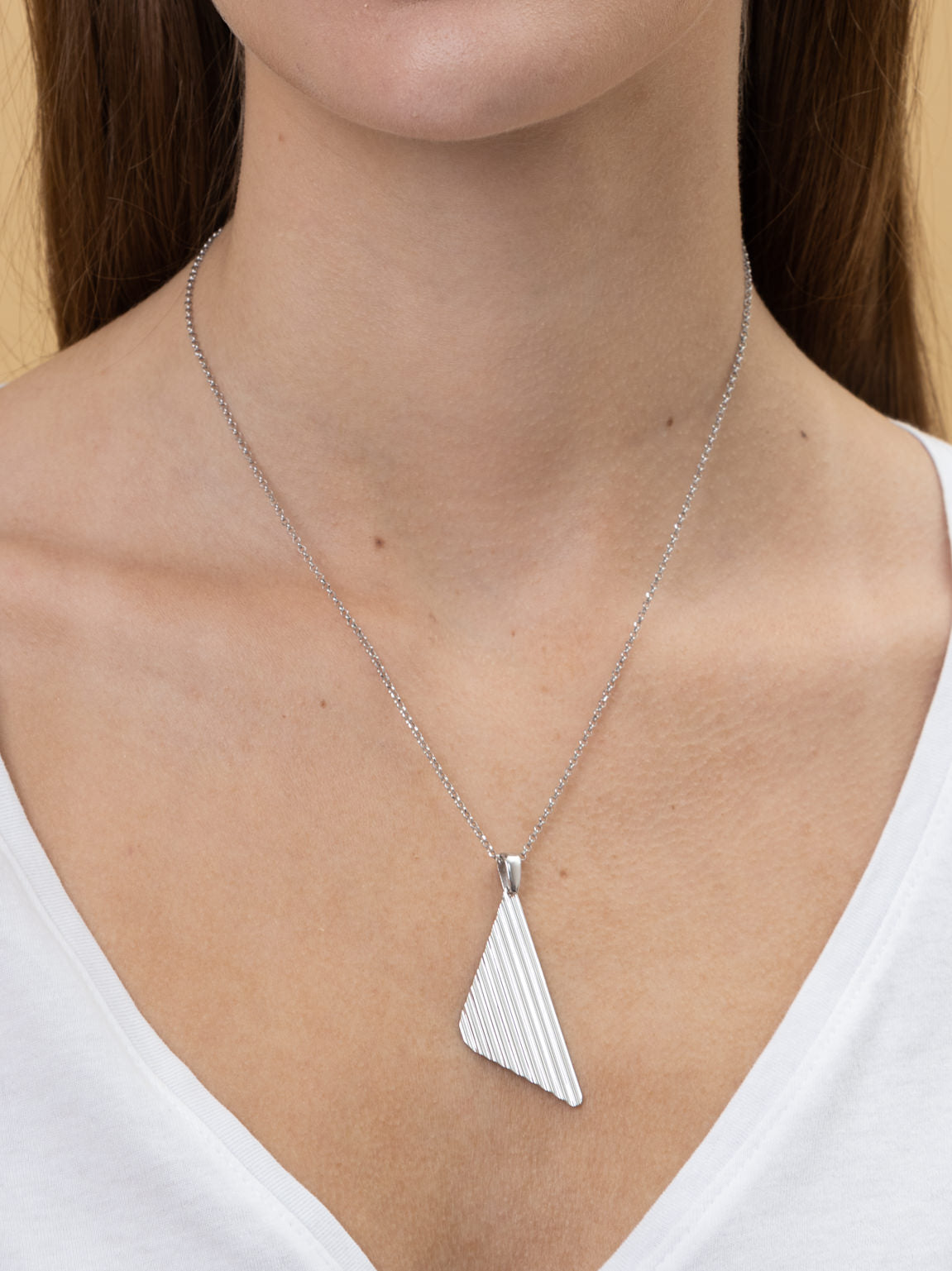 Fio com pendente, Prata de lei 925, Nenhuma pedra, Sem cor, Triângulo,, Prateado, comprimento do pendente: 5.1 cm, largura do pendente: 2.0 cm, 5.75 gramas.