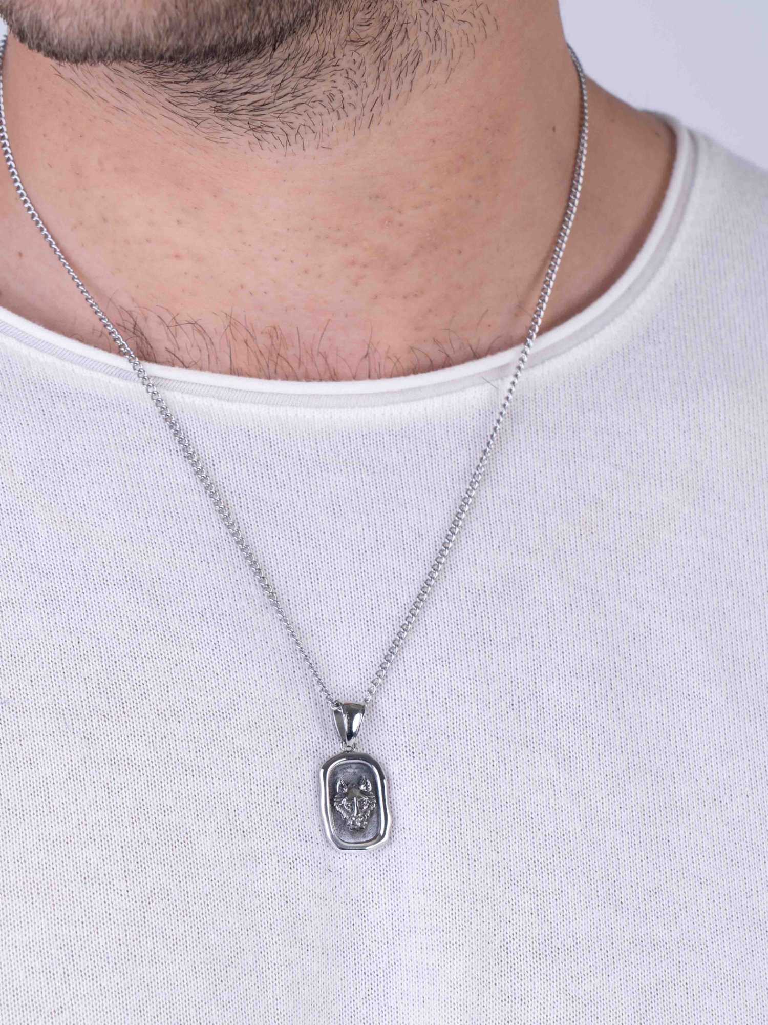 colar masculino, Aço inoxidável, Nenhuma pedra, Sem cor, Animal,, Prateado, comprimento do pendente: 3.2 cm, largura do pendente: 1.6 cm, 10.00 gramas.