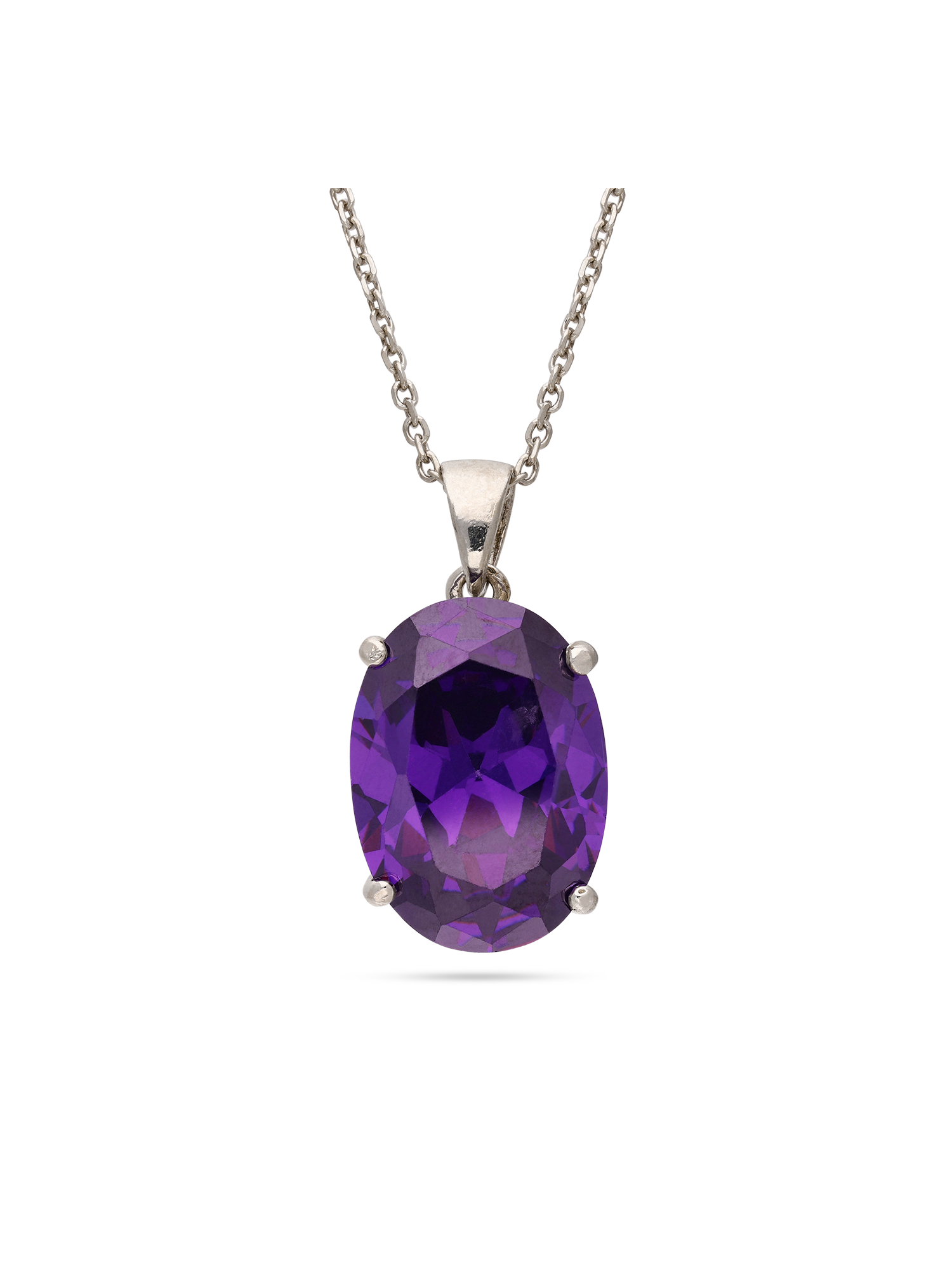 Fio com pendente, Prata de lei 925, Zircónia de cultivo, Violeta, Círculo, Feito à mão,, Prateado, comprimento do pendente: 2.3 cm, largura do pendente: 1.3 cm, 7.87 gramas.