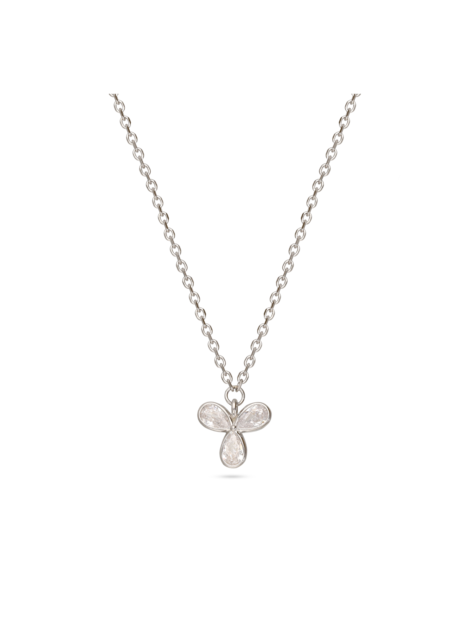 - Design: Pendente em forma de flor, com 1.3 cm de comprimento e 1.0 cm de largura, com uma zircónia de cultivo clara que adiciona um brilho sutil e encantador.