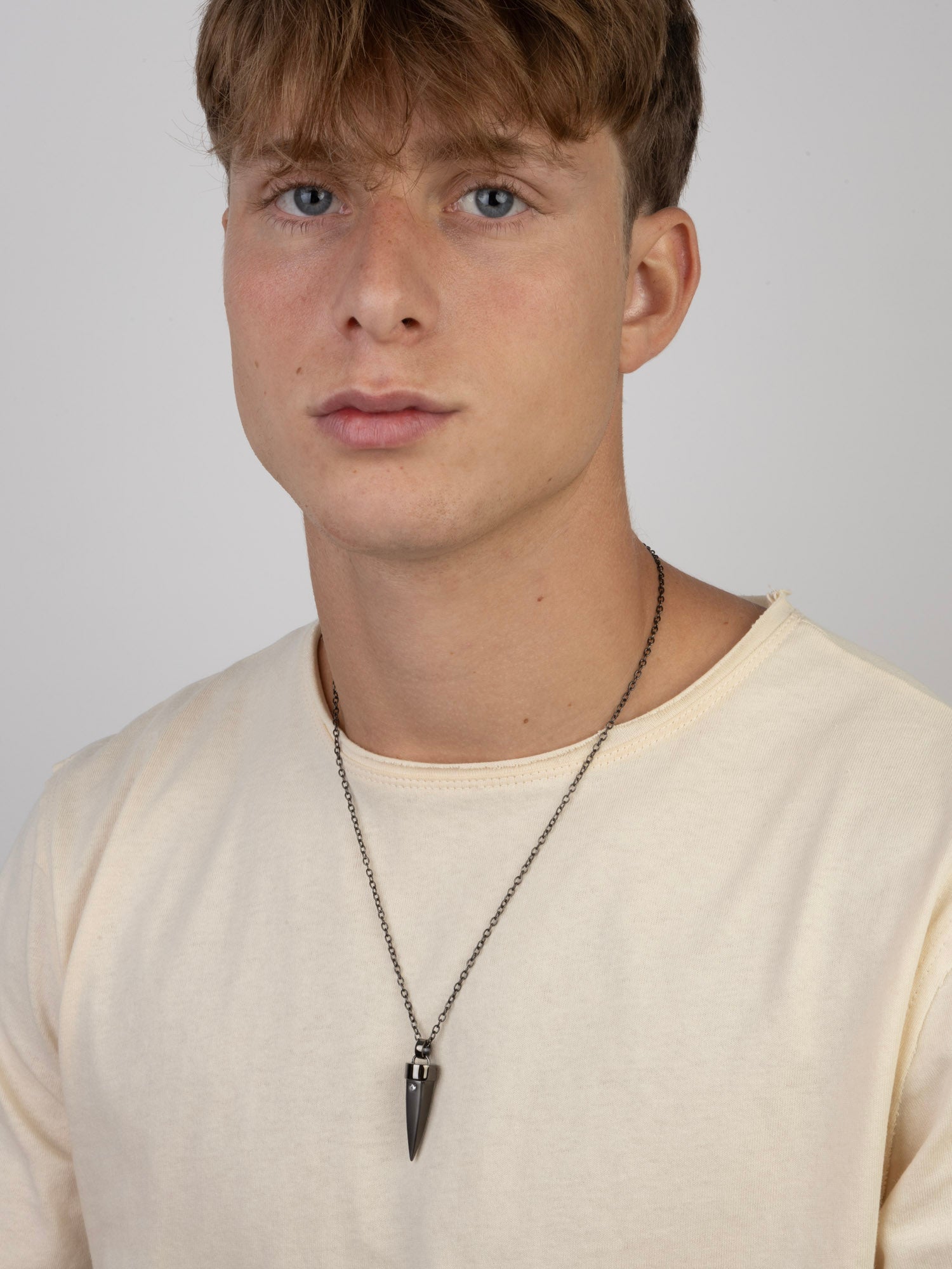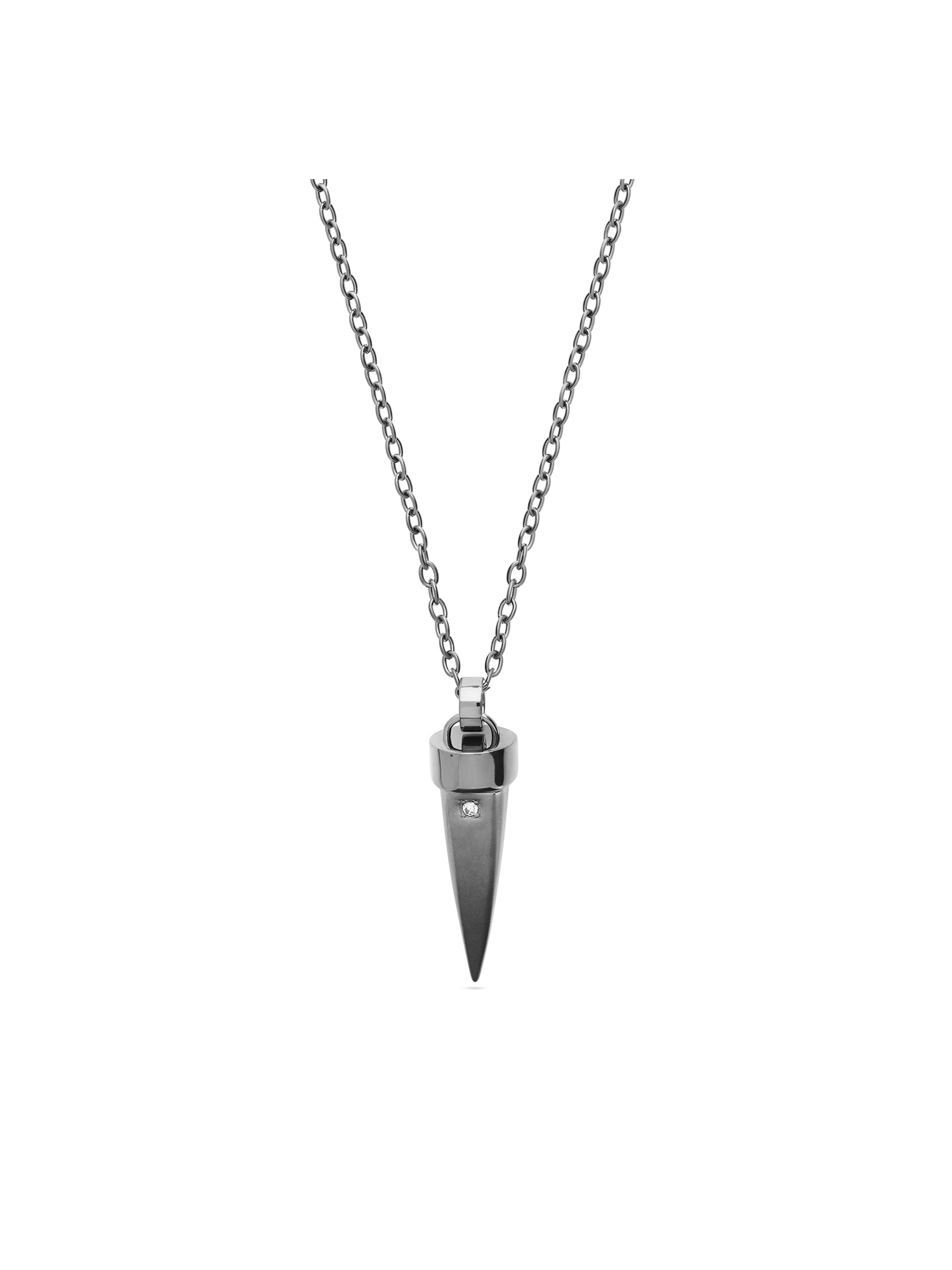 colar masculino, Aço inoxidável, Zircónia de cultivo, Claro, Variedade de formas, Feito à mão,, Tom preto, comprimento do pendente: 4.1 cm, largura do pendente: 1.0 cm, 17.20 gramas.