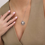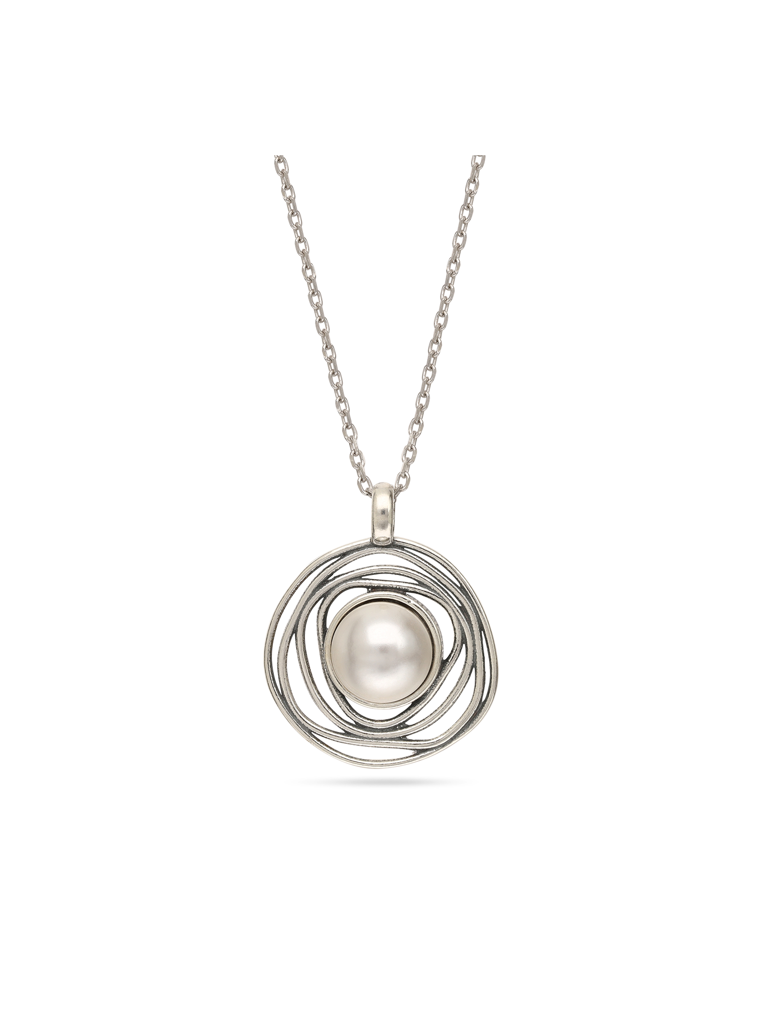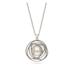 Fio com pendente, Prata de lei 925, Swarovski de cultivo, Branco, Círculo, Feito à mão, Prateado, comprimento do pendente: 4.0 cm, largura do pendente: 3.0 cm, 5.70 gramas.
