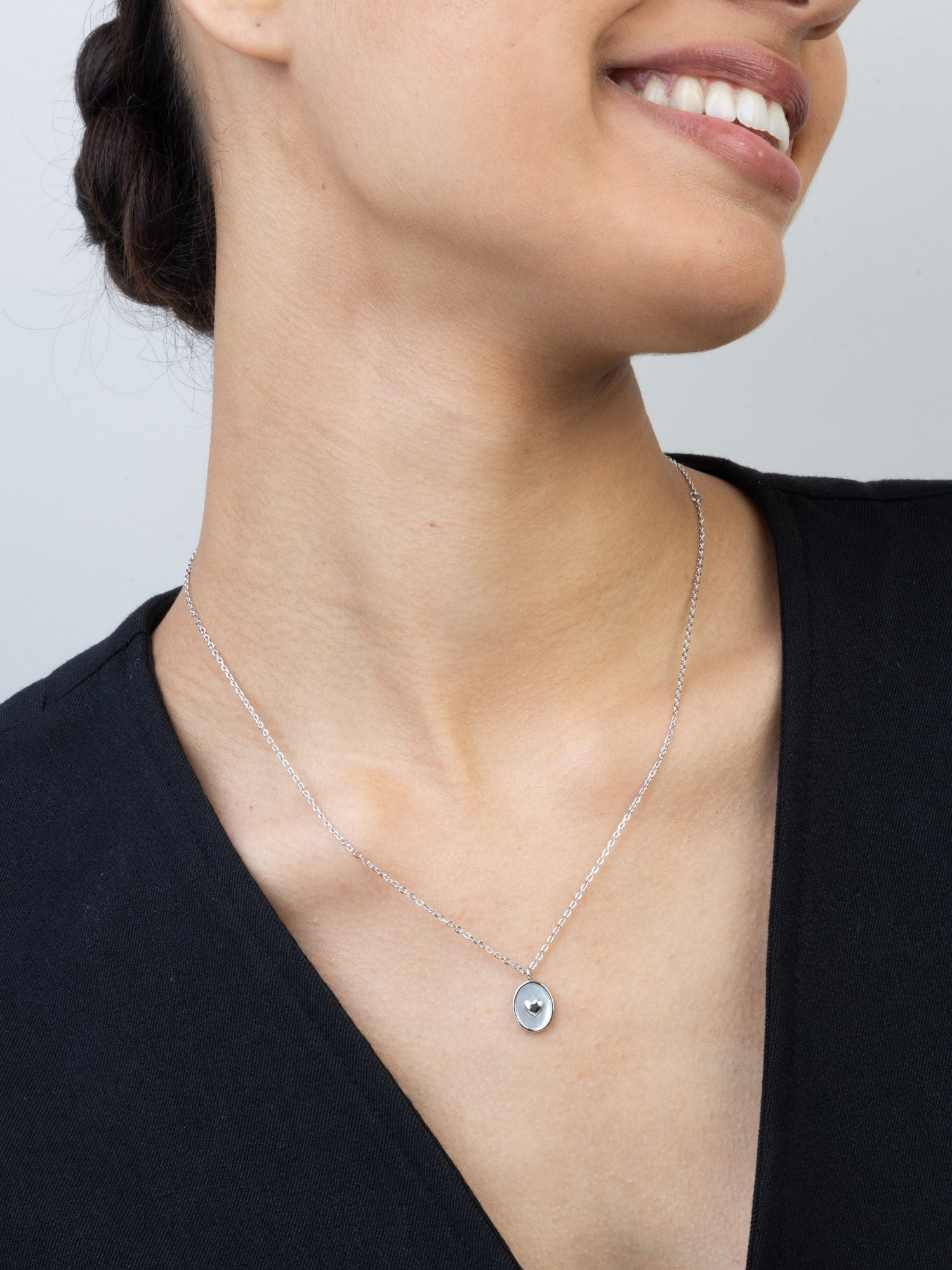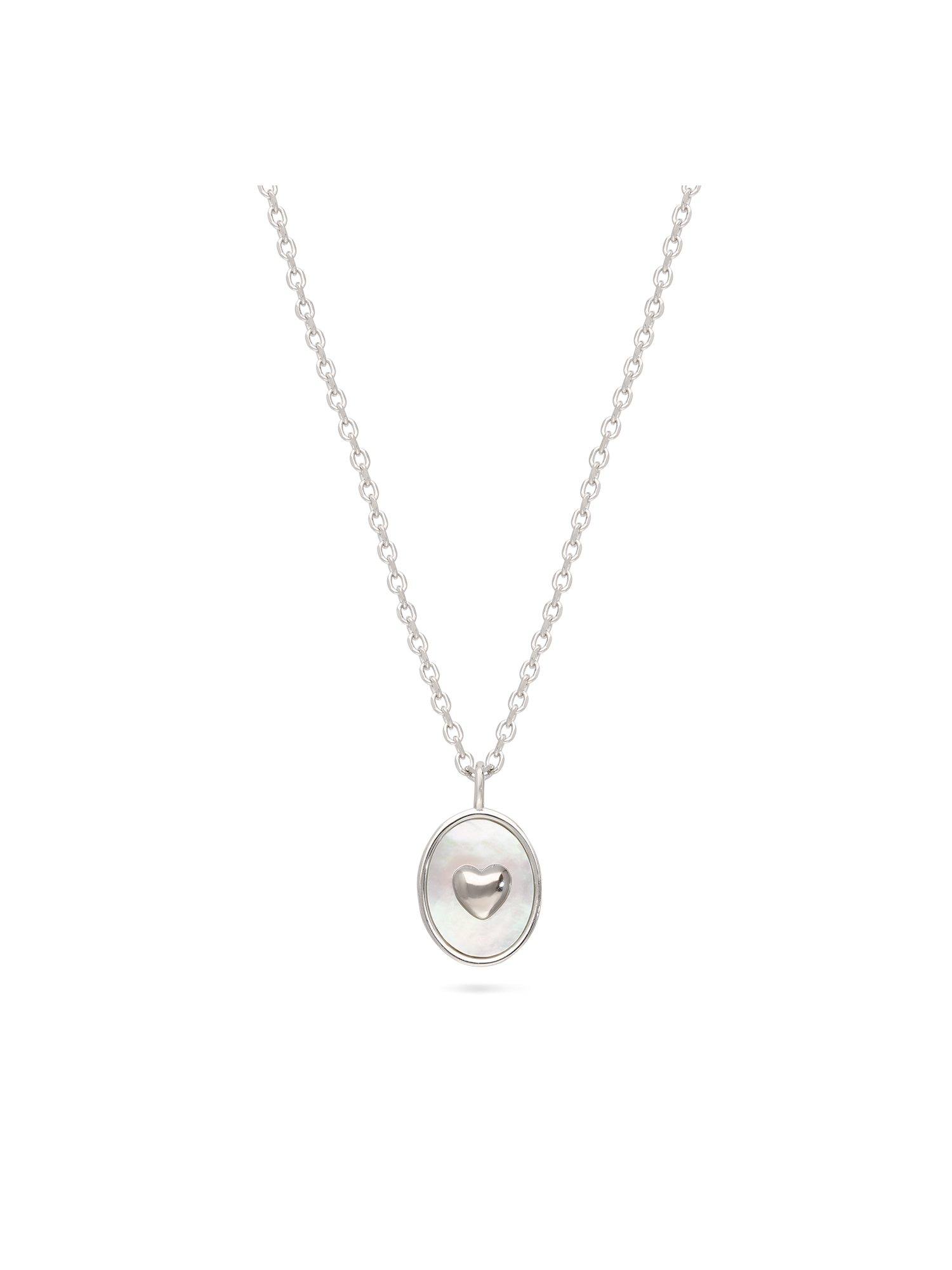 Fio com pendente, Prata de lei 925, Madrepérola de cultivo, Branco, Coração, Círculo, Feito à mão,, Prateado, largura do pendente: 0.9 cm, comprimento do pendente: 1.5 cm, 2.94 gramas.