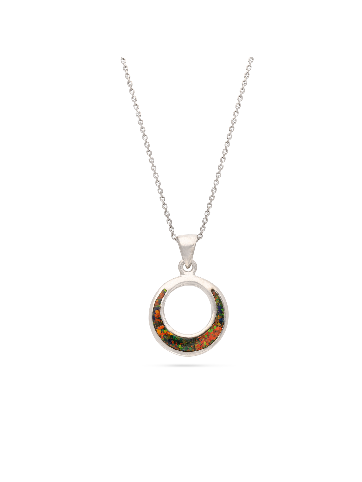 Fio com pendente, Prata de lei 925, Opala de cultivo, Colorido, Círculo, Feito à mão,, Prateado, largura do pendente: 1.8 cm, comprimento do pendente: 2.7 cm, 5.58 gramas.