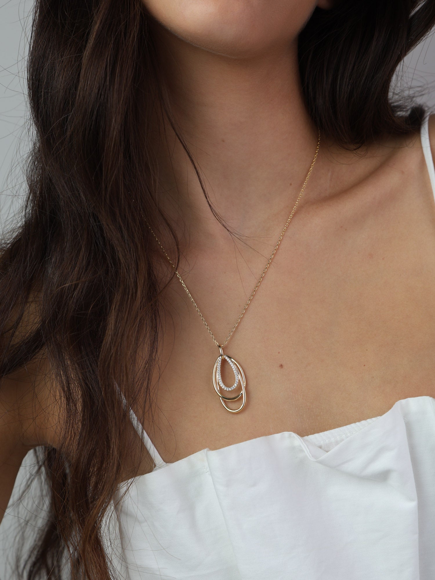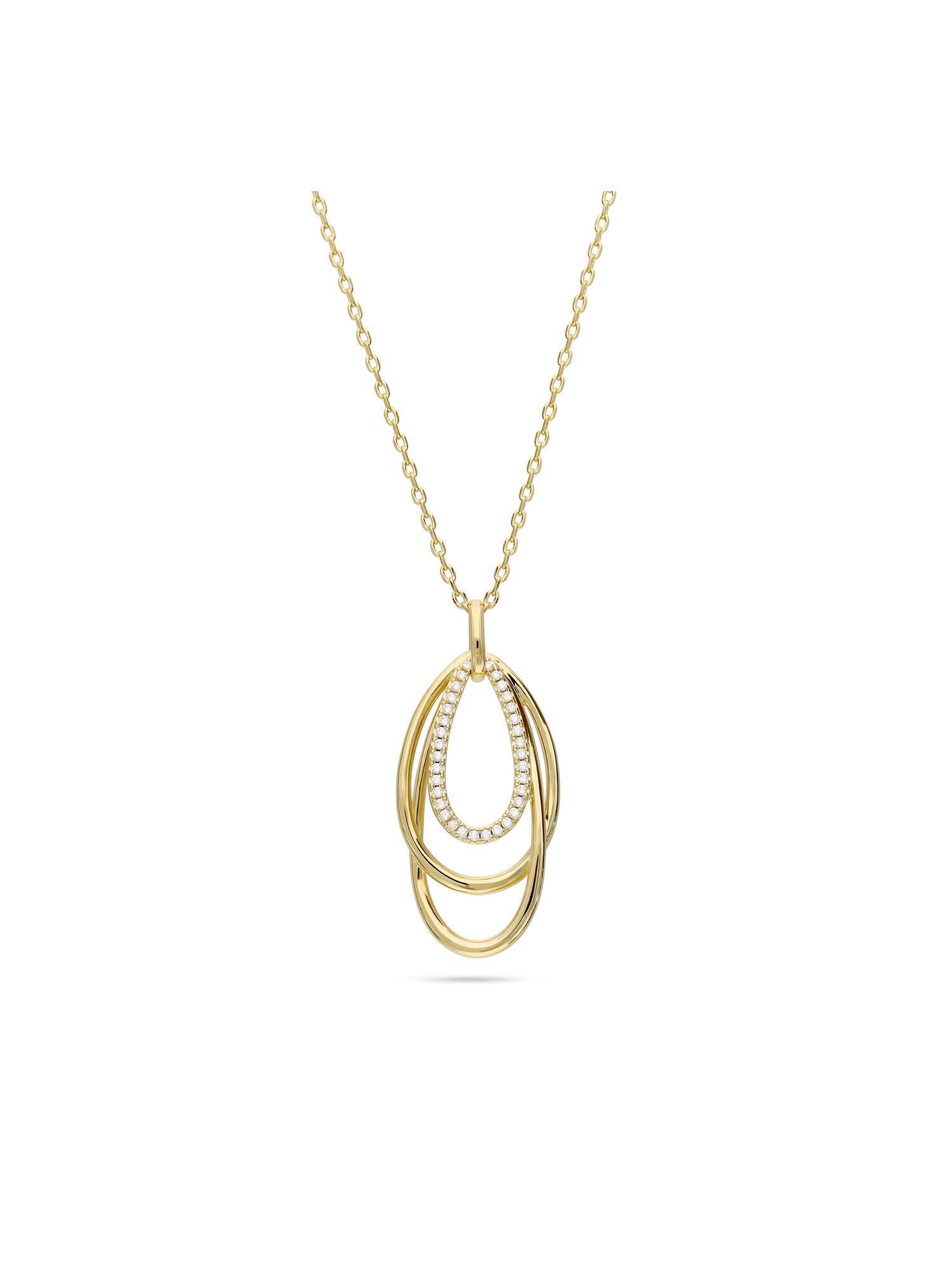 Fio com pendente, Banhado a Ouro, Zircónia de cultivo, Claro, Lágrima, Feito à mão, Dourado, comprimento do pendente: 4.0 cm, largura do pendente: 1.8 cm, 6.03 gramas.