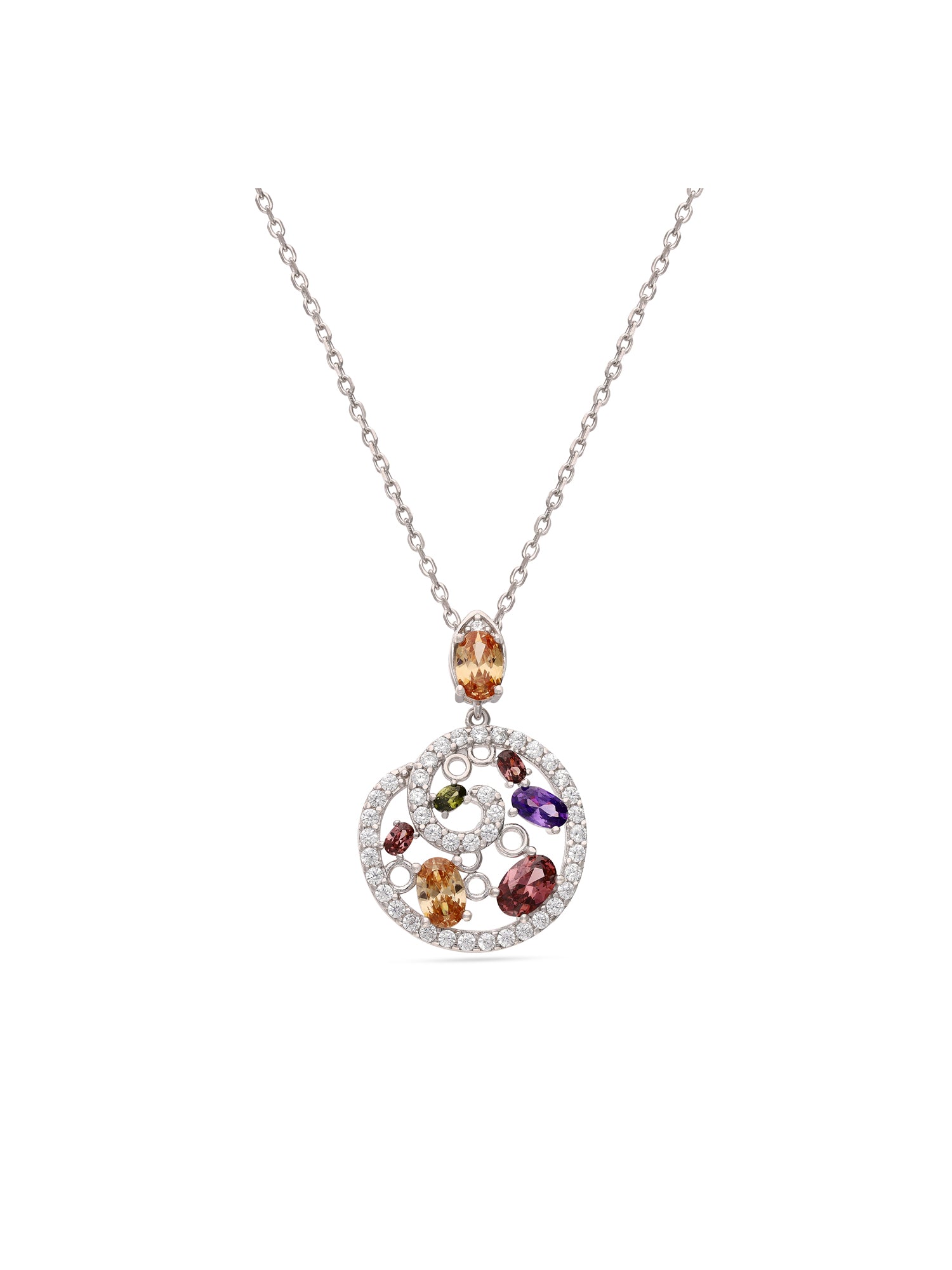 Fio com pendente, Prata de lei 925, Zircónia de cultivo, Colorido, Variedade de formas, Feito à mão,, Prateado, comprimento do pendente: 2.9 cm, largura do pendente: 2.0 cm, 5.00 gramas.
