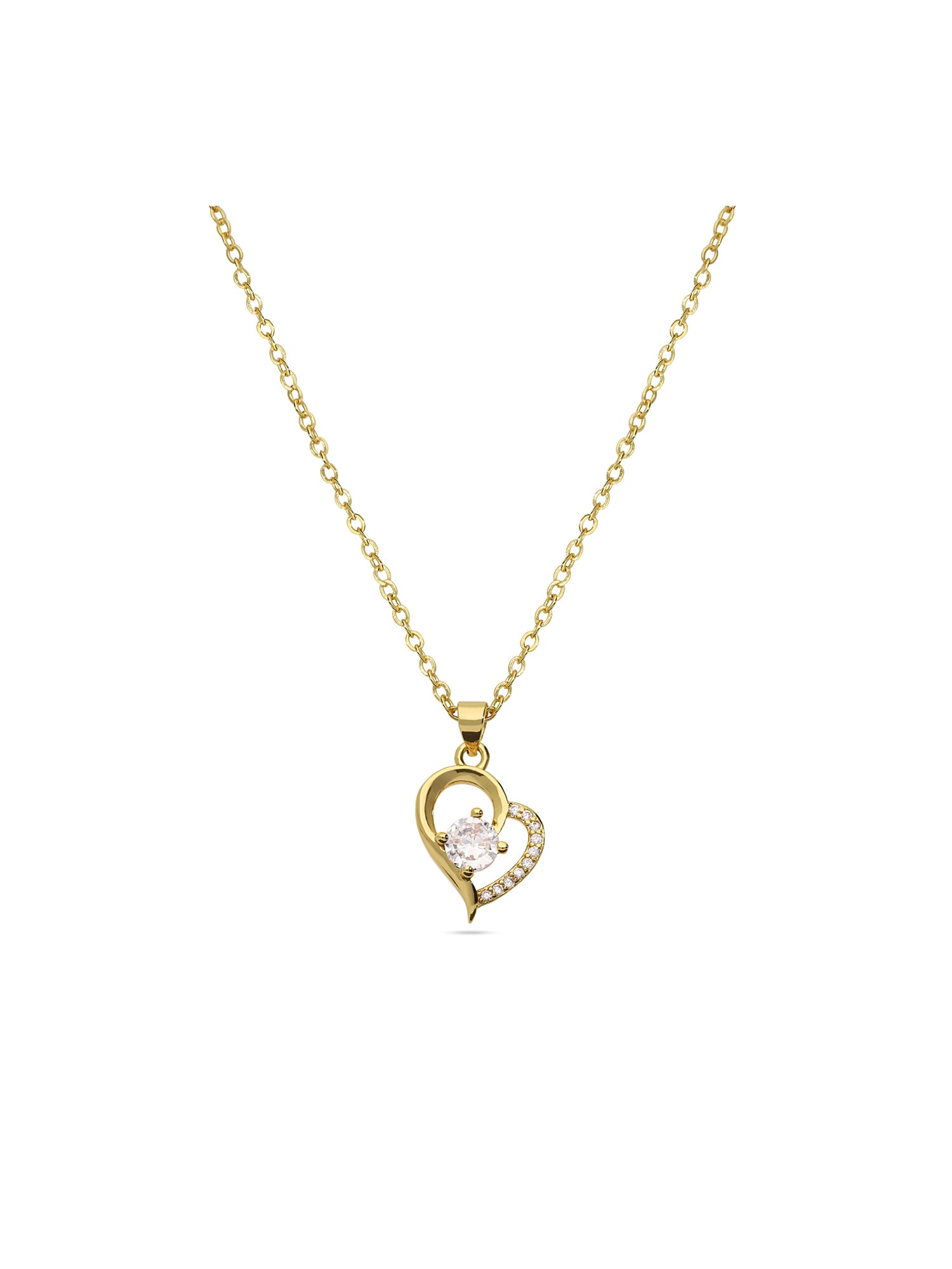 Fio com pendente, Banhado a Ouro, Zircónia de cultivo, Claro, Coração, Círculo, Feito à mão,, Dourado, comprimento do pendente: 1.9 cm, largura do pendente: 1.2 cm, 3.50 gramas.