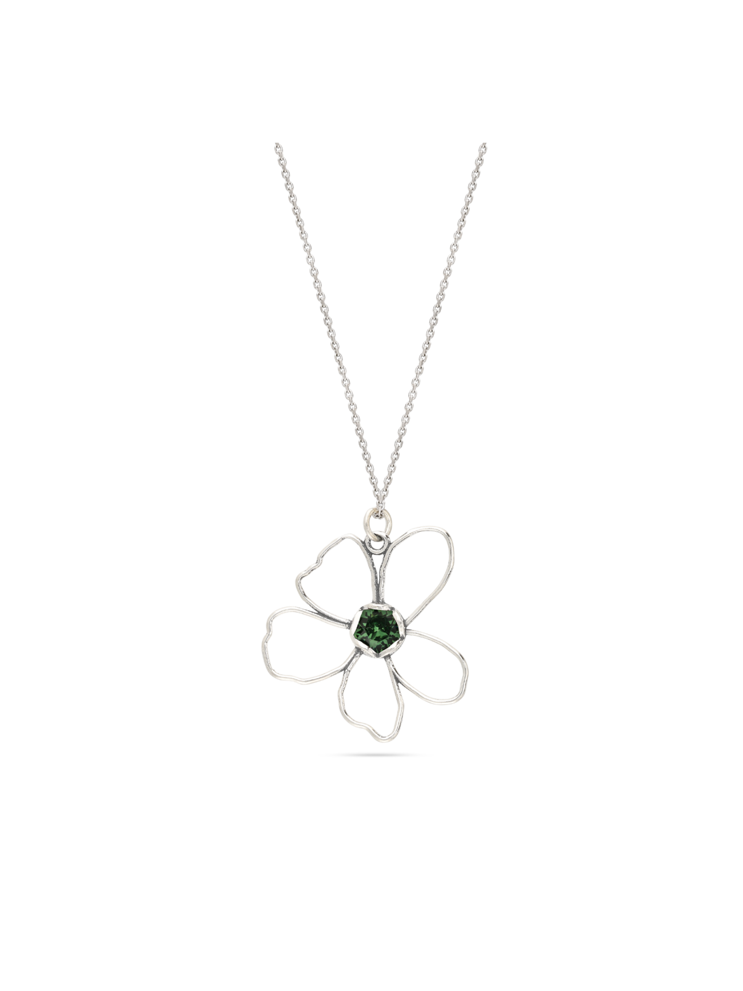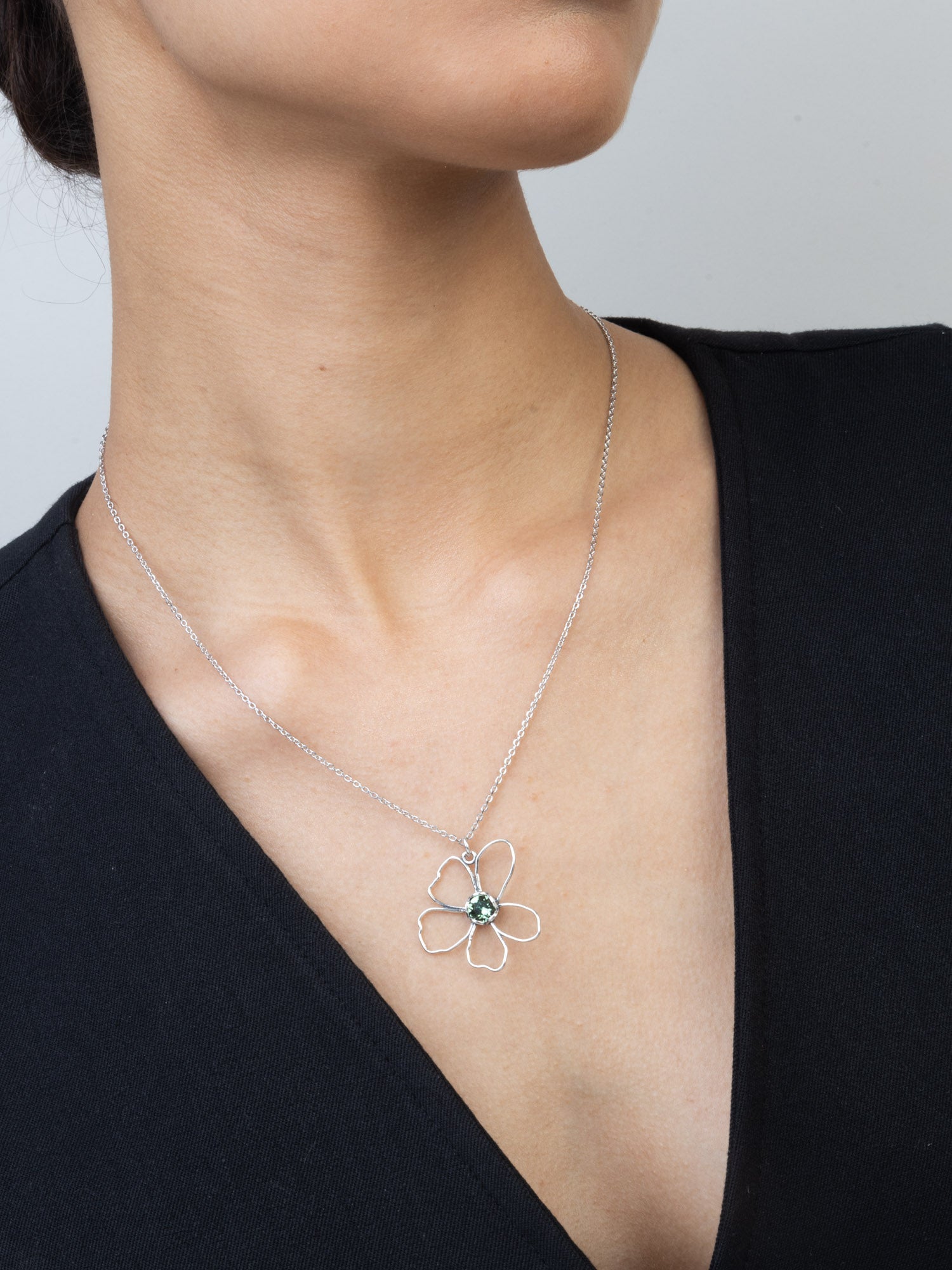 Fio com pendente flor em prata 925 com cristal verde
