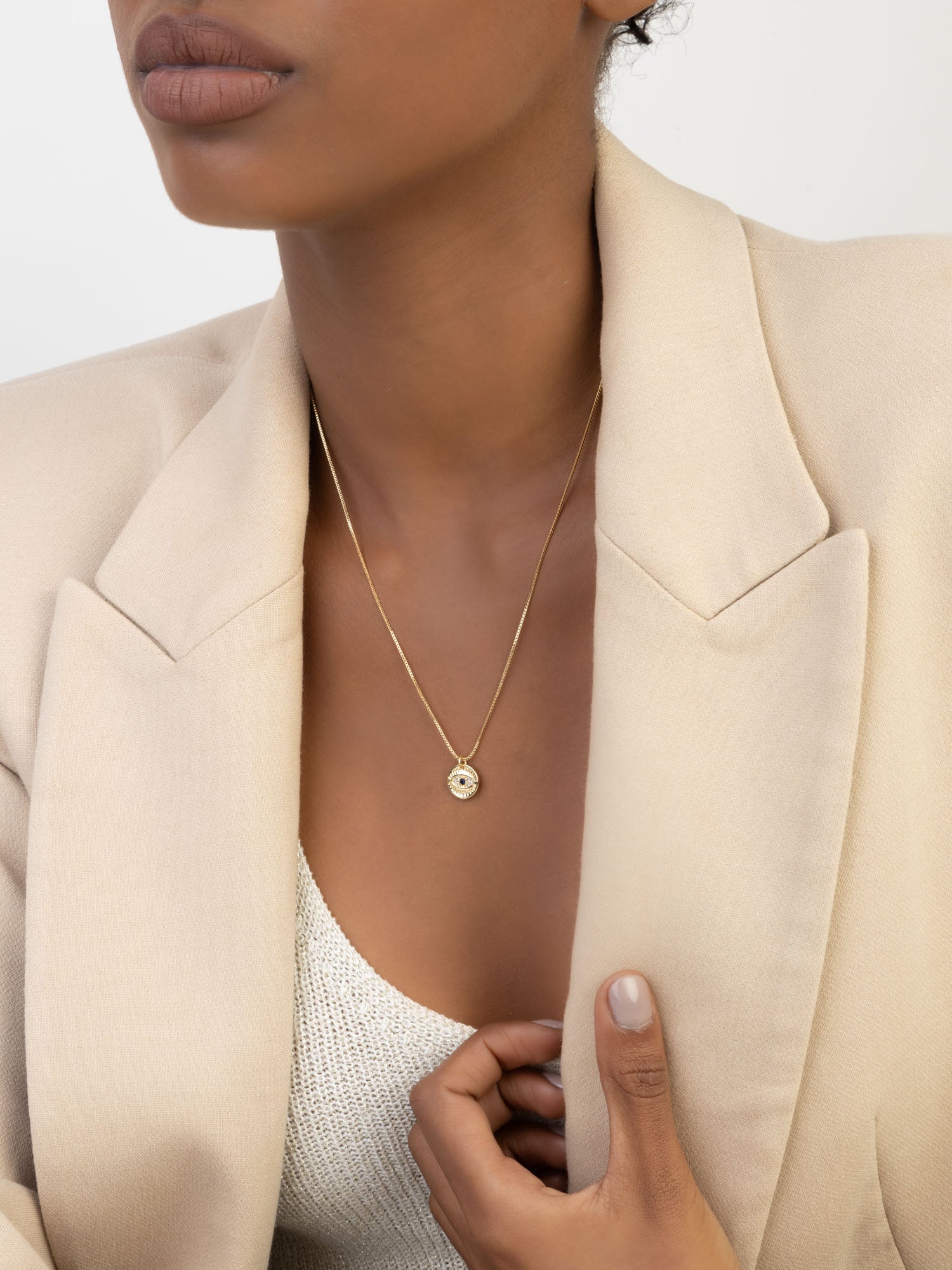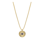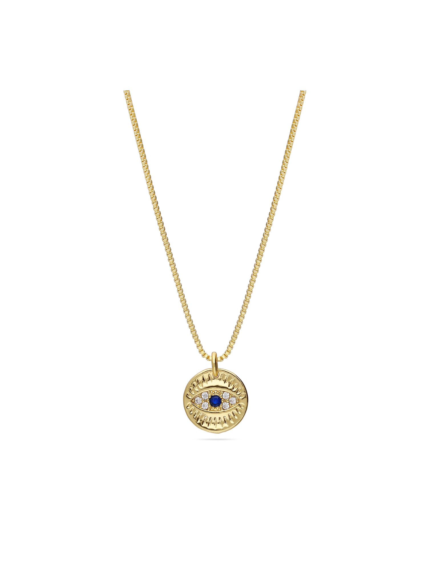 Fio com pendente, Banhado a Ouro, Zircónia de cultivo, Azul, Claro, Olho, Feito à mão,, Dourado, comprimento do pendente: 1.2 cm, largura do pendente: 1.1 cm, 3.25 gramas.