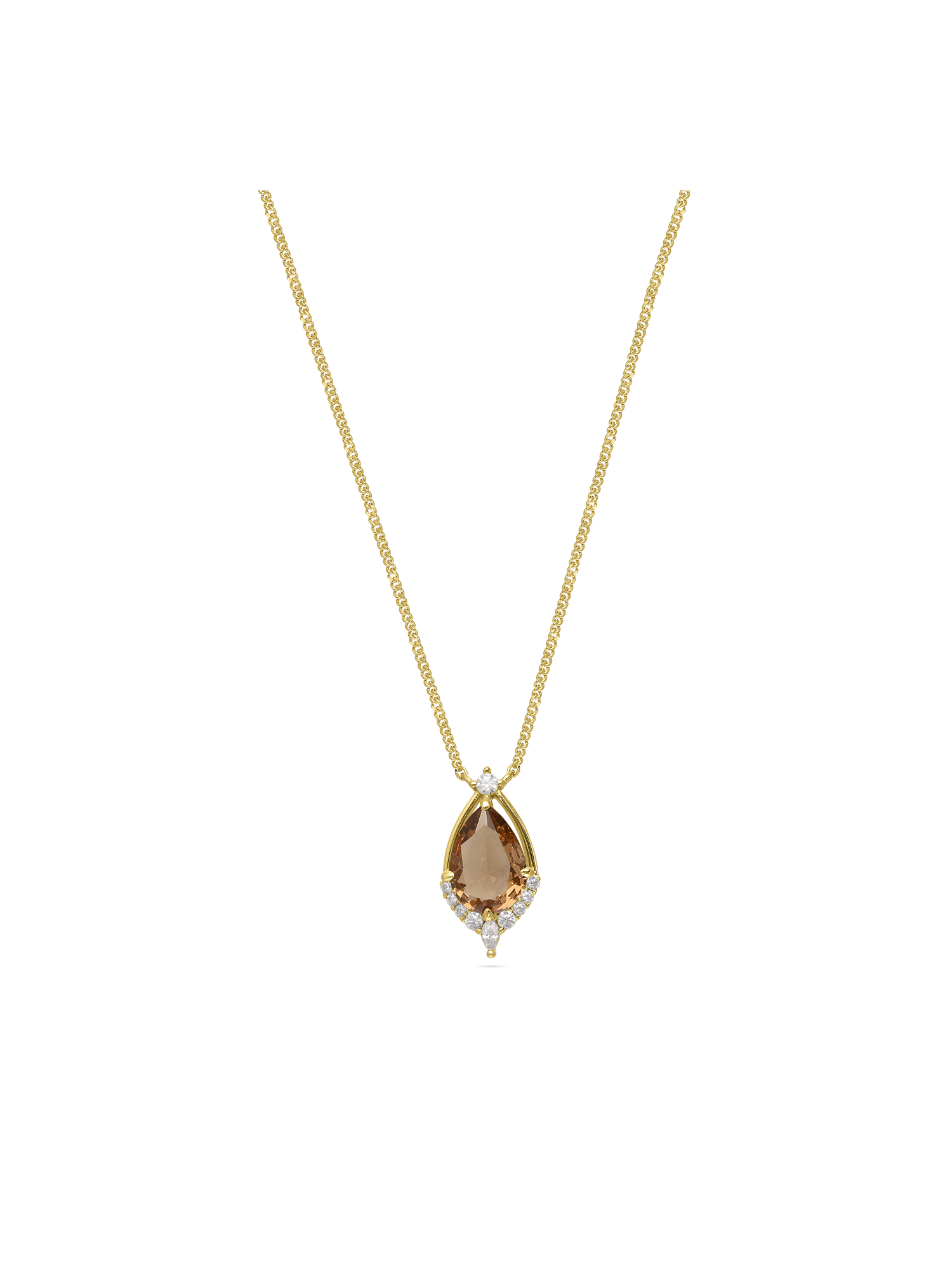 Fio com pendente, Banhado a Ouro, Zircónia de cultivo, Claro, Castanho, Lágrima, Feito à mão, Dourado, comprimento do pendente: 1.7 cm, largura do pendente: 1.0 cm, 3.37 gramas.