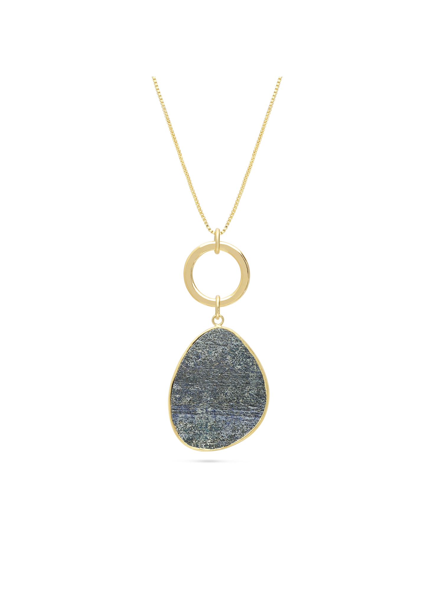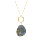 Fio com pendente, Banhado a Ouro, Lápis de cultivo, Azul, Lágrima, Círculo, Feito à mão, Dourado, comprimento do pendente: 6.0 cm, largura do pendente: 3.0 cm, 11.00 gramas.
