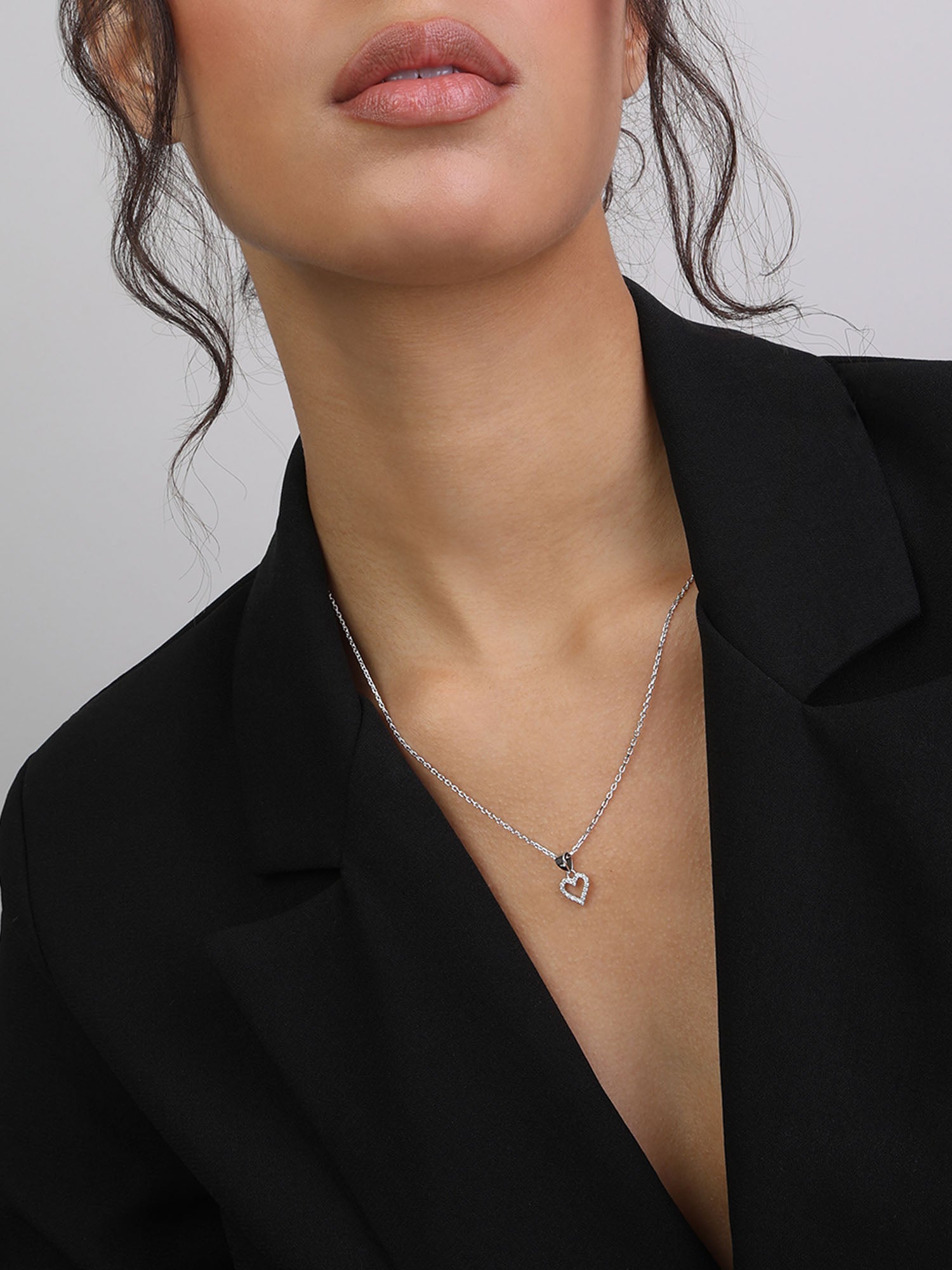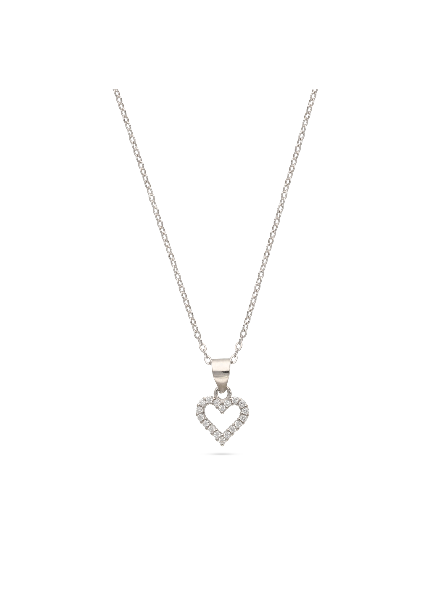 Fio com pendente, Prata de lei 925, Zircónia de cultivo, Claro, Coração, Feito à mão, Prateado, comprimento do pendente: 1.6 cm, largura do pendente: 0.9 cm, 1.94 gramas.