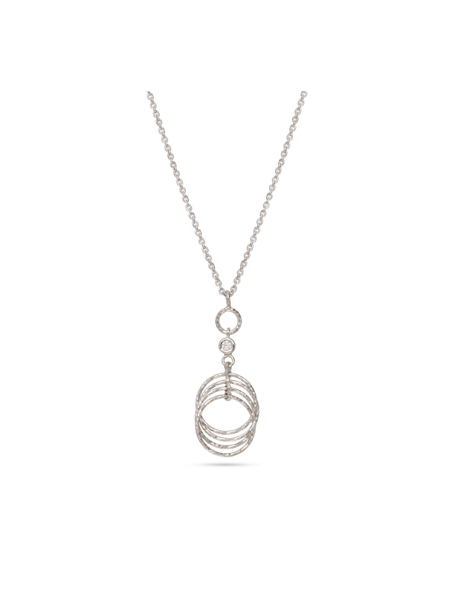 Fio com pendente, Prata de lei 925, Zircónia de cultivo, Claro, Círculo, Feito à mão, Prateado, comprimento do pendente: 3.8 cm, largura do pendente: 1.3 cm, 3.00 gramas.