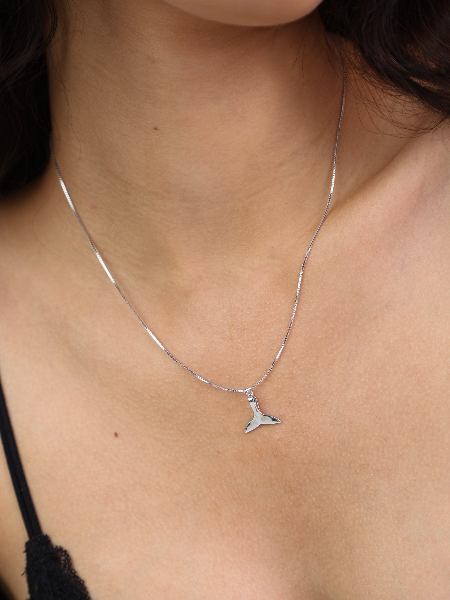 Fio com pendente, Prata de lei 925, Nenhuma pedra, Sem cor, Barbatana,, Prateado, largura do pendente: 1.5 cm, comprimento do pendente: 1.5 cm, 2.78 gramas.