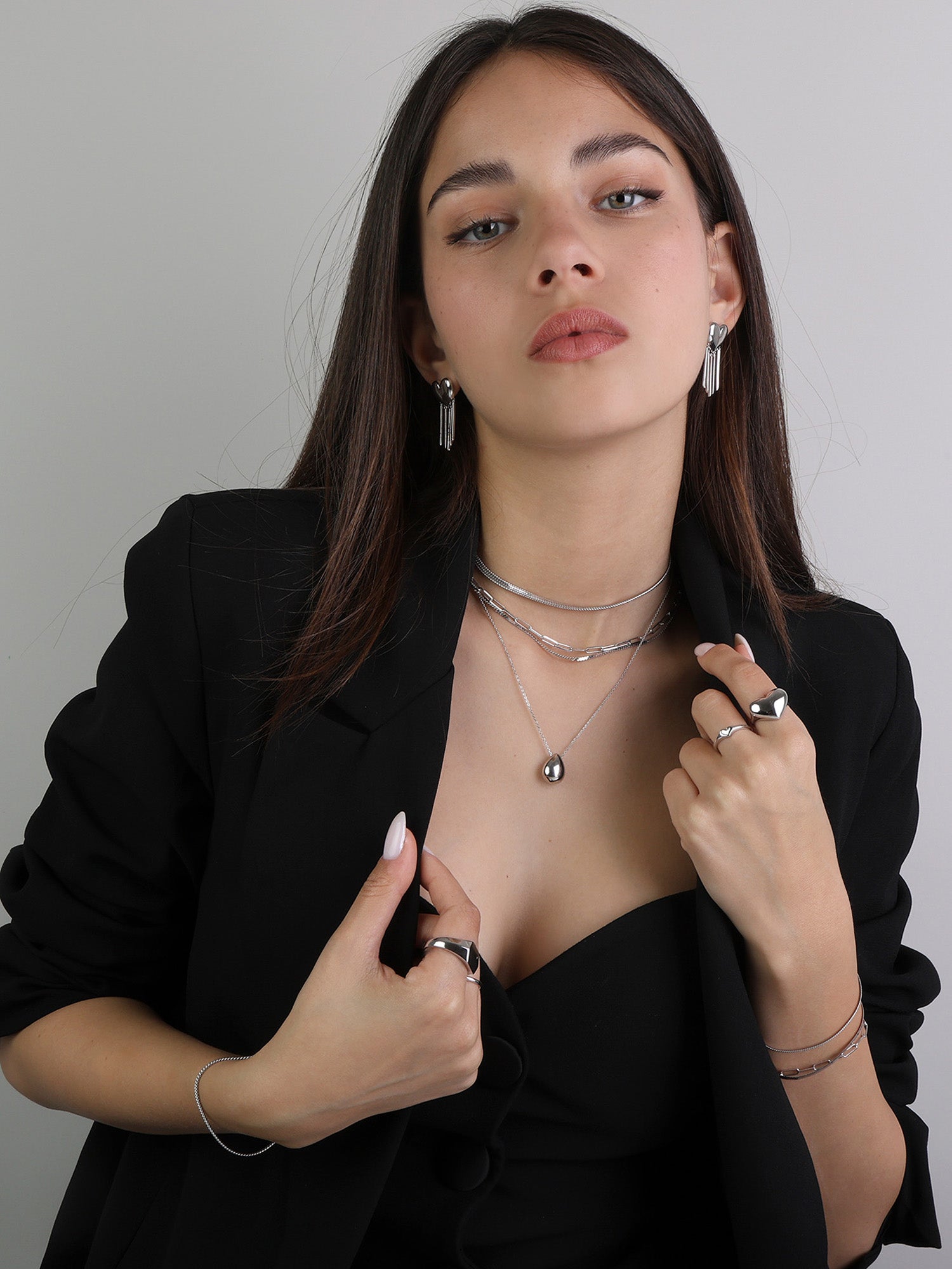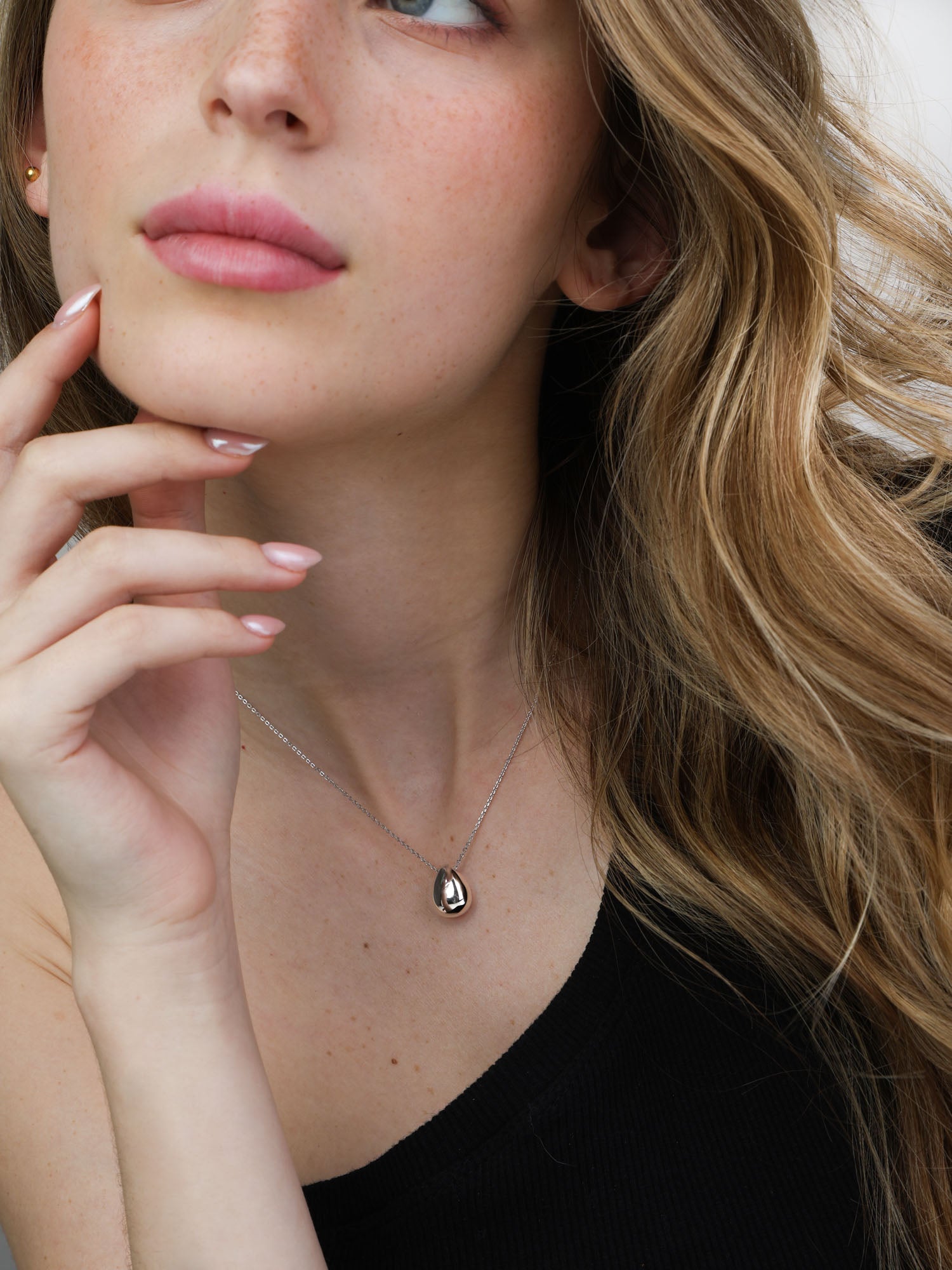 Fio com pendente, Prata de lei 925, Nenhuma pedra, Sem cor, Lágrima, Prateado, comprimento do pendente: 1.5 cm, largura do pendente: 1.2 cm, 4.88 gramas.