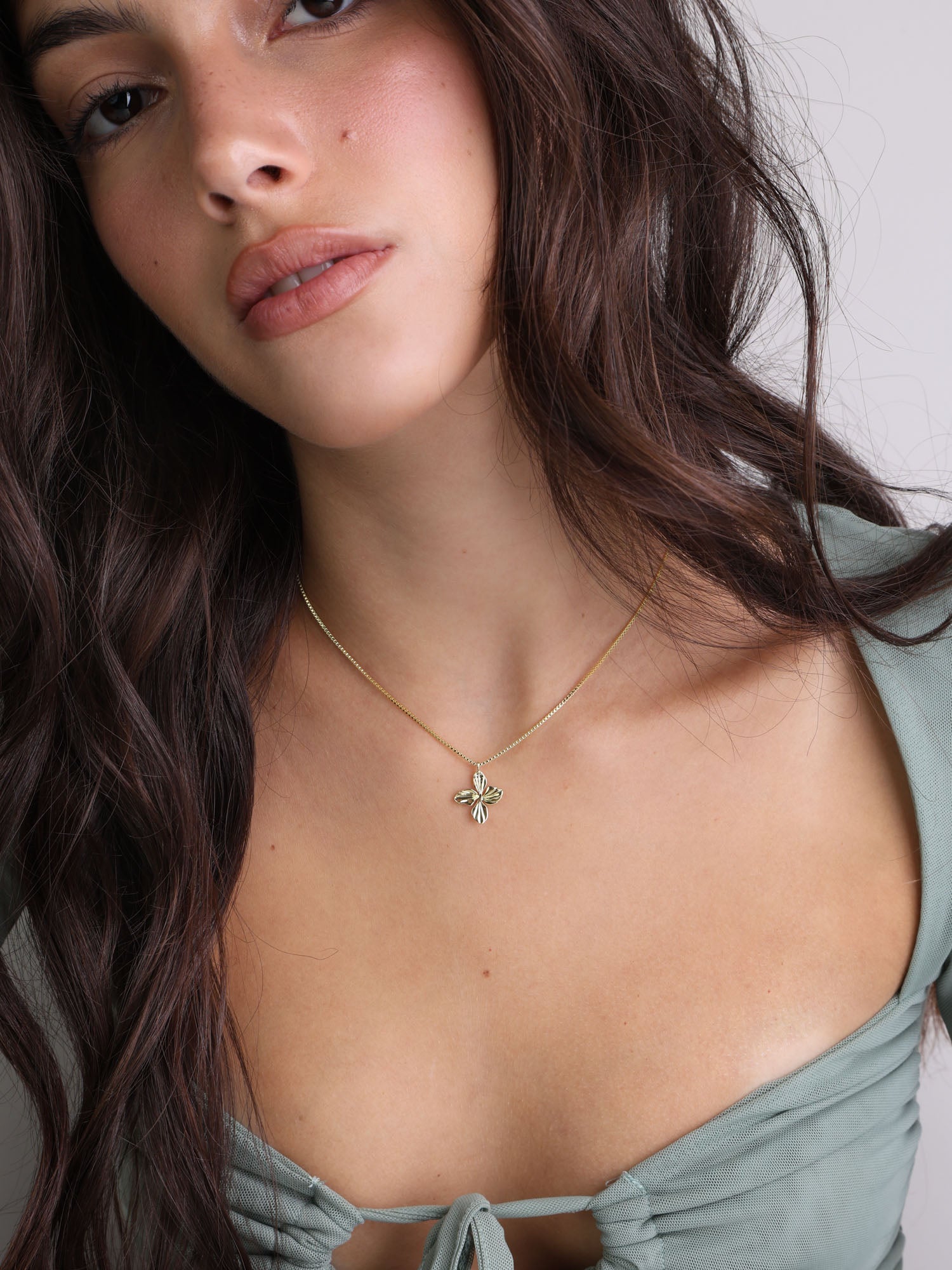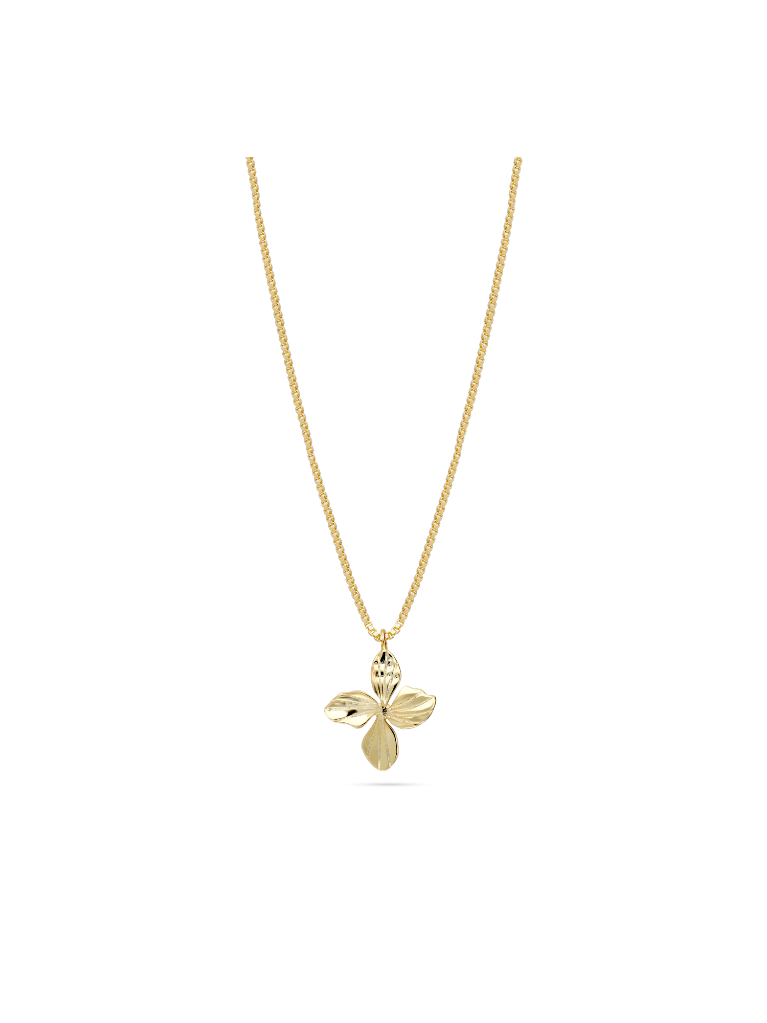 Fio com pendente, Banhado a Ouro, Nenhuma pedra, Sem cor, Flor, Dourado, comprimento do pendente: 1.5 cm, largura do pendente: 1.5 cm, 3.07 gramas.