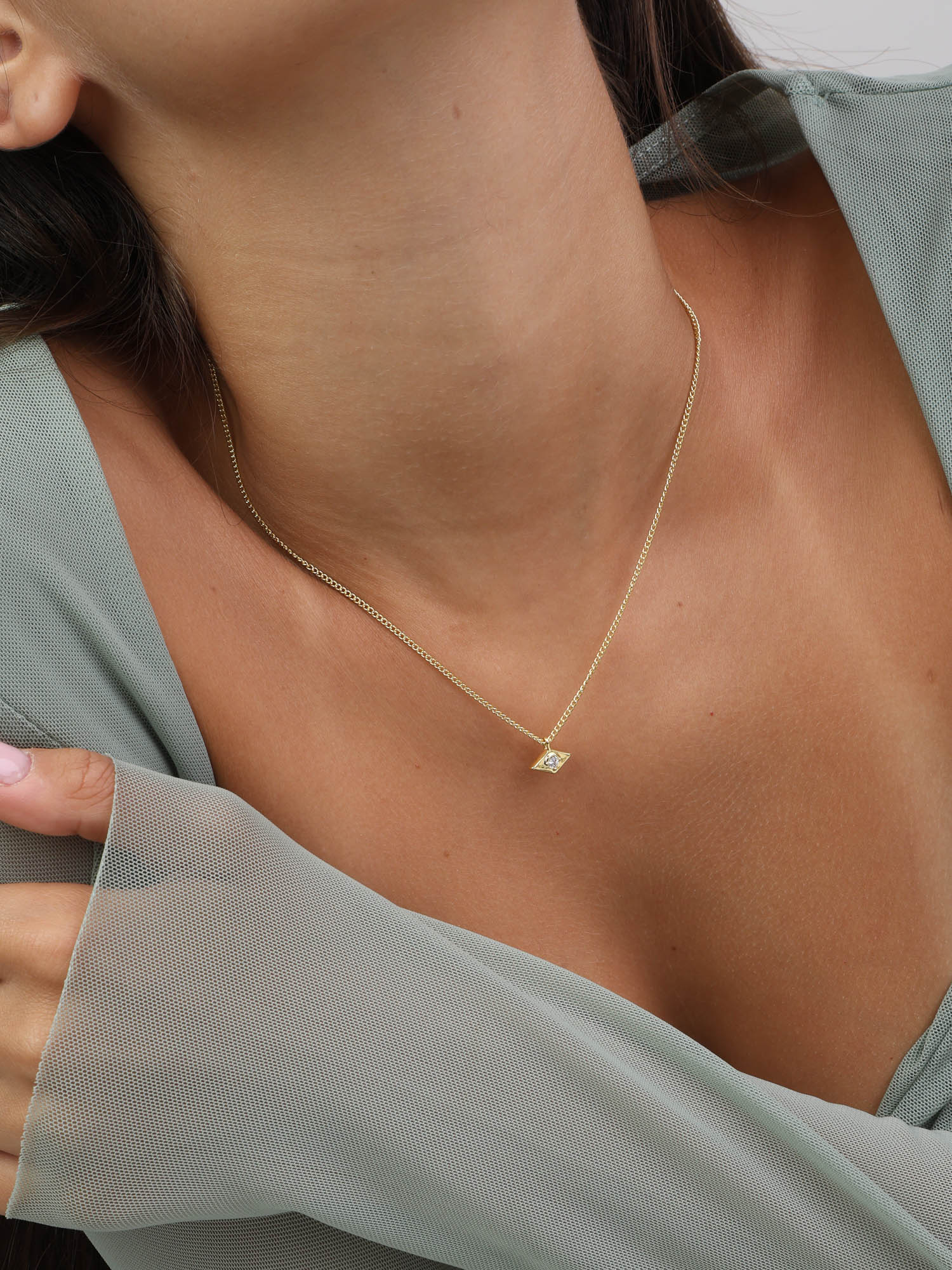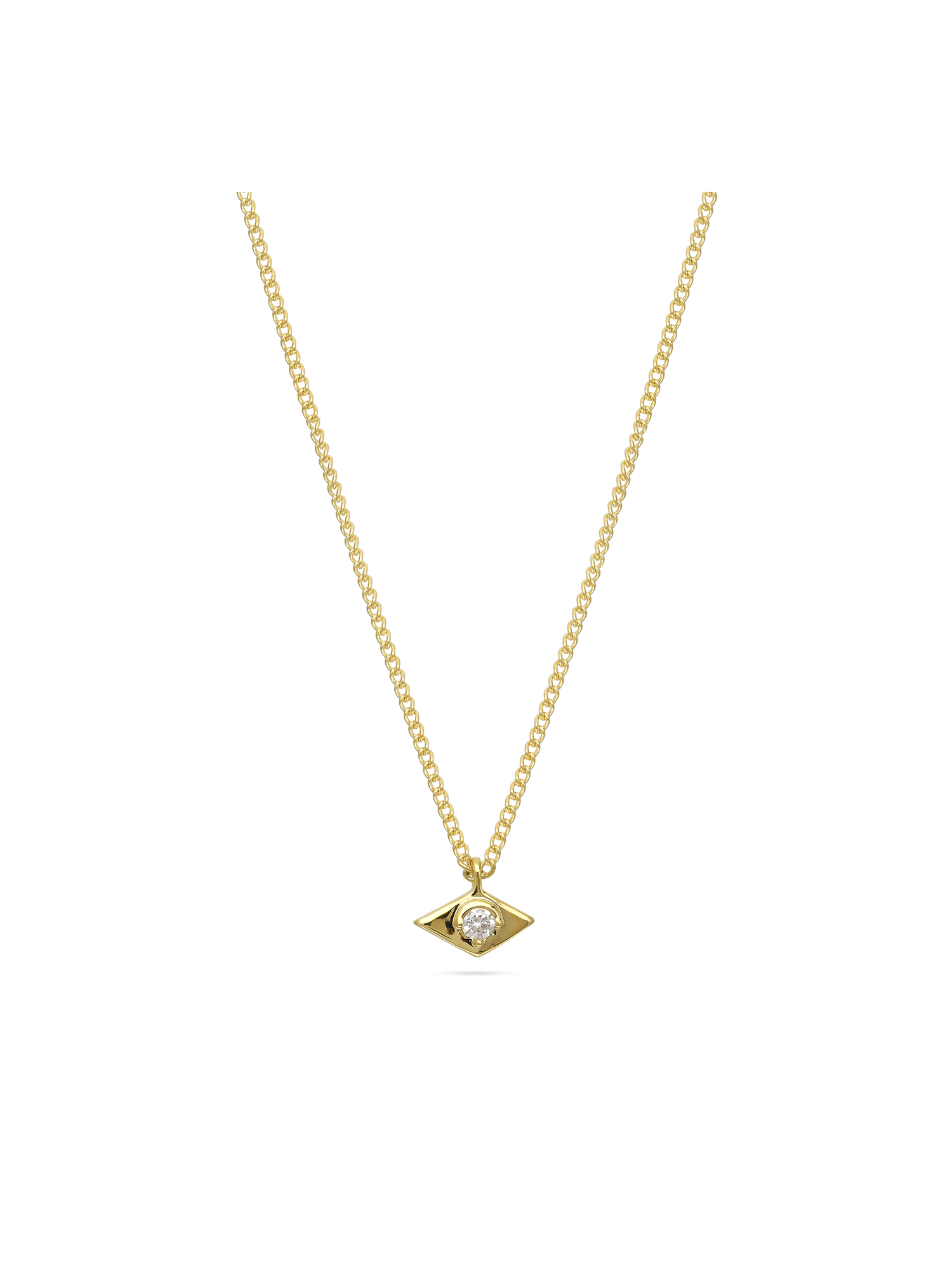 Fio com pendente, Banhado a Ouro, Zircónia de cultivo, Claro, Losango, Feito à mão, Dourado, largura do pendente: 1.0 cm, comprimento do pendente: 0.5 cm, 2.87 gramas.