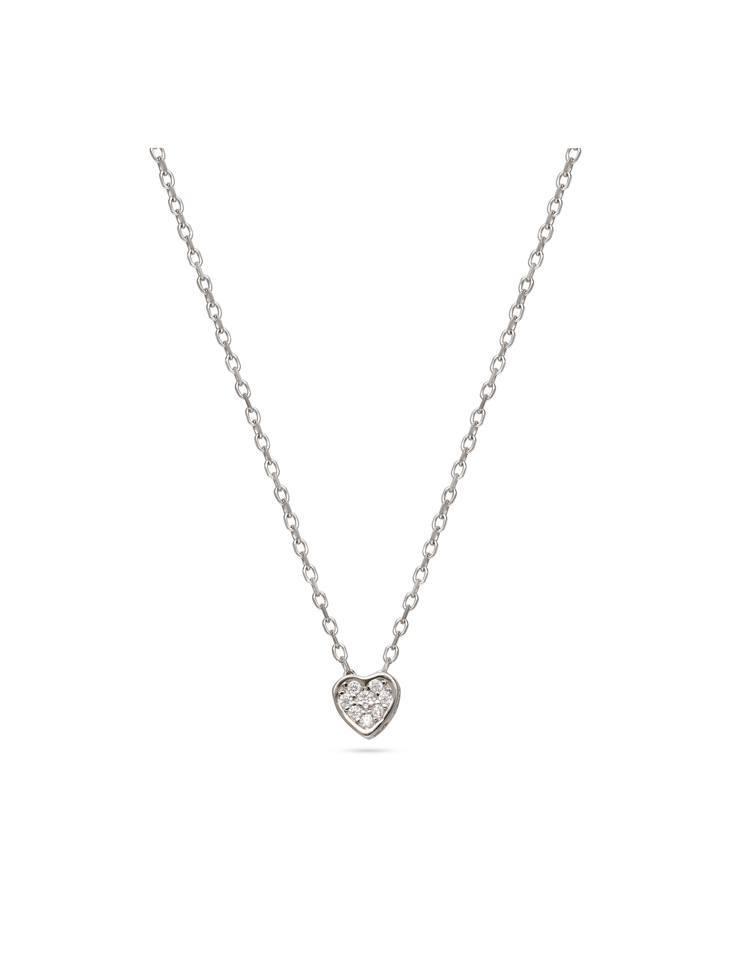 Fio com pendente, Prata de lei 925, Zircónia de cultivo, Claro, Coração, Feito à mão, Prateado, comprimento do pendente: 0.5 cm, largura do pendente: 0.5 cm, 1.68 gramas.