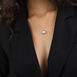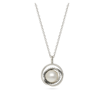 Fio com pendente, Prata de lei 925, Swarovski de cultivo, Branco, Círculo, Feito à mão, Prateado, comprimento do pendente: 3.0 cm, largura do pendente: 2.5 cm, 4.70 gramas.