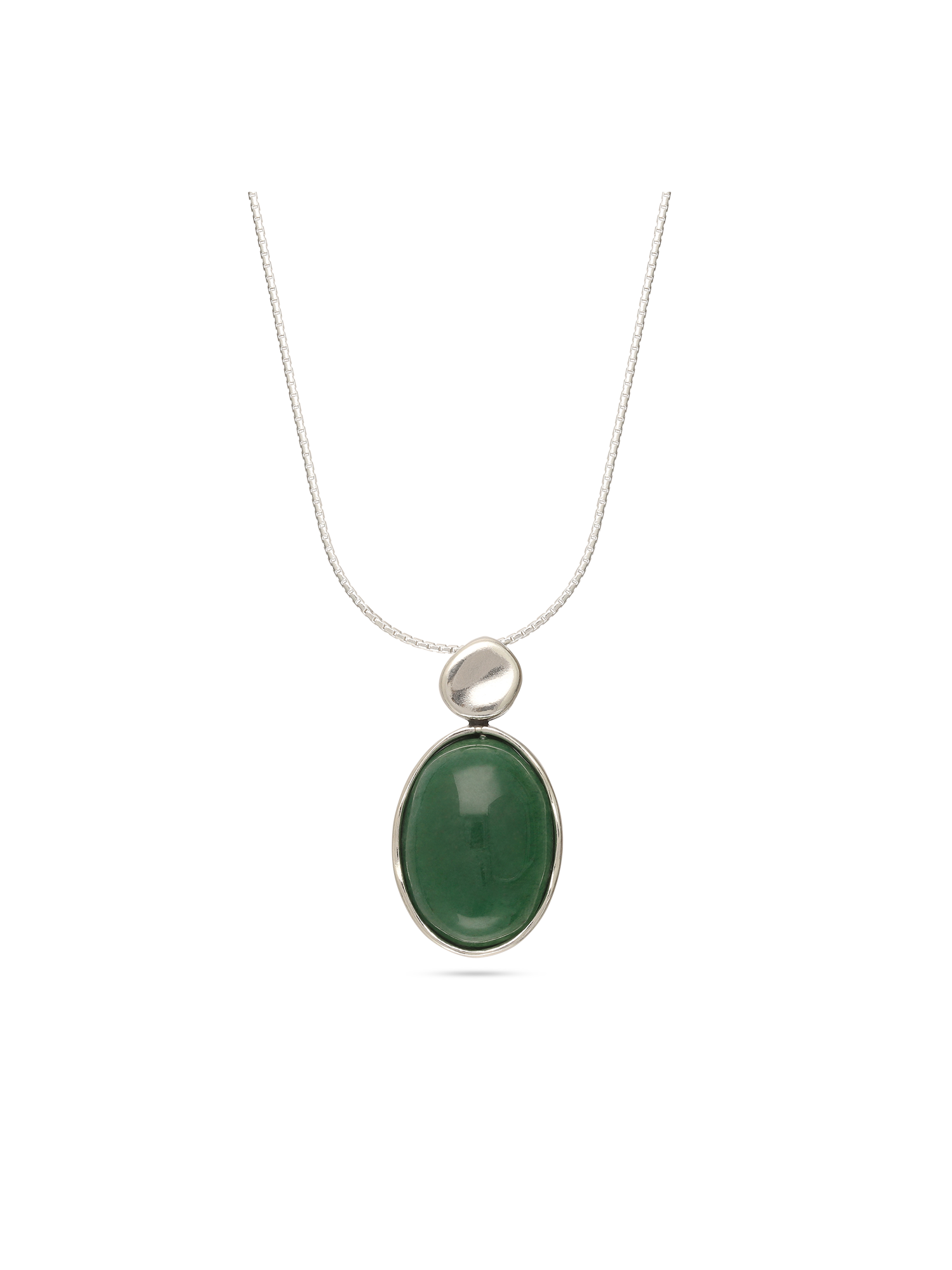 Fio com pendente, Prata, Aventurina de cultivo, Verde, Círculo, Feito à mão, Prateado, comprimento do pendente: 3.5 cm, largura do pendente: 1.0 cm, 6.00 gramas.